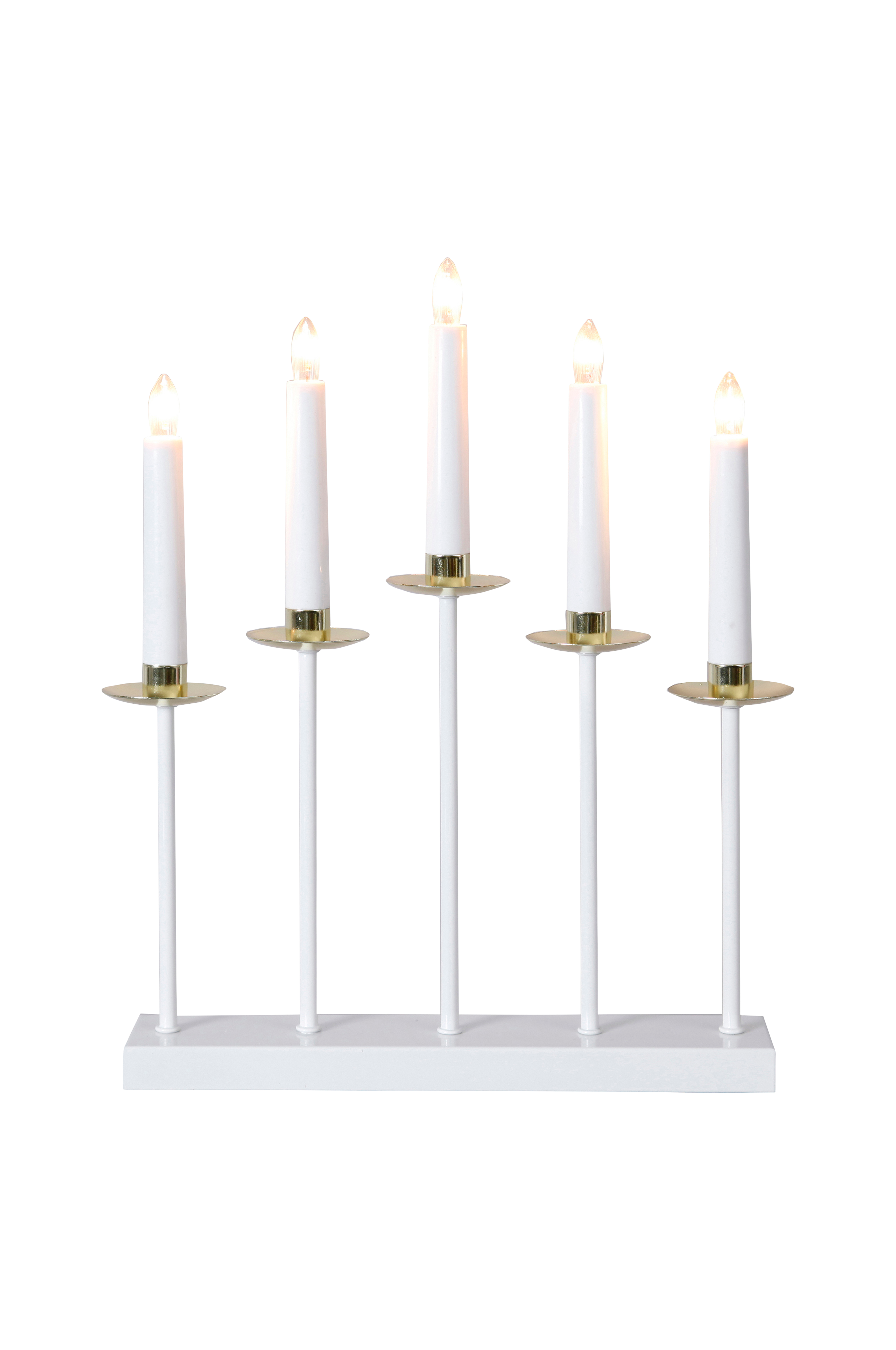 5 armad metalljusstake Greta med fasta kopparbrickor. Höjd 37 Djup 6 Bredd 31. Anslutningskabel med brytare 1,8 m.