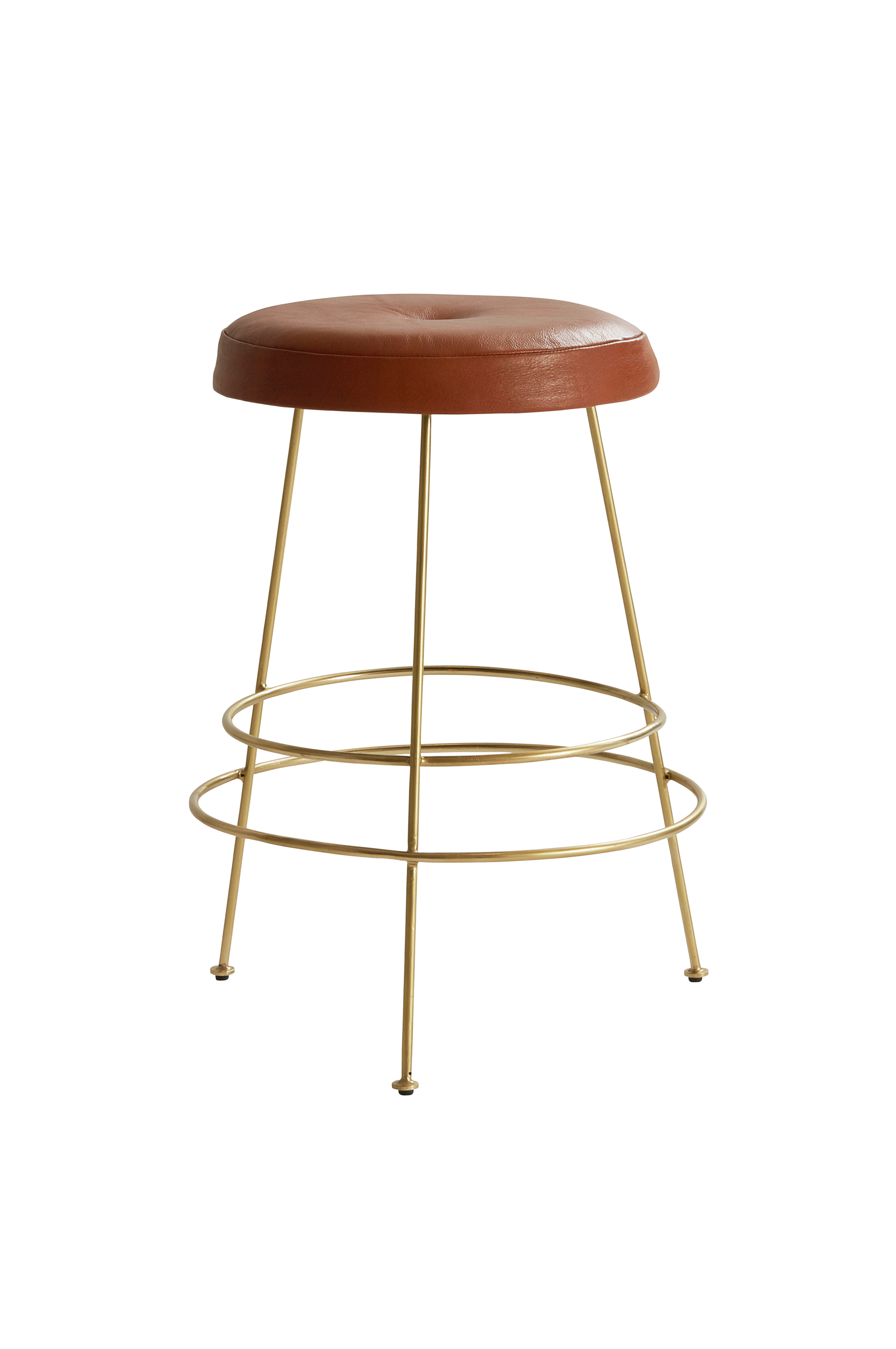 Barpall med mjukstoppad, läderklädd sits och pläterade metallben. Två metallringar som fotstöd nertill. Känn inspirationen från ett amerikanskt hamburgerhak med svartvitrutigt golv och skön retrostil. ALABAMA smälter in perfekt med tidstypiska pläterade ben och en bekvämt mjukstoppad lädersits. Viss montering krävs. Monteringsanvisningar medföljer.