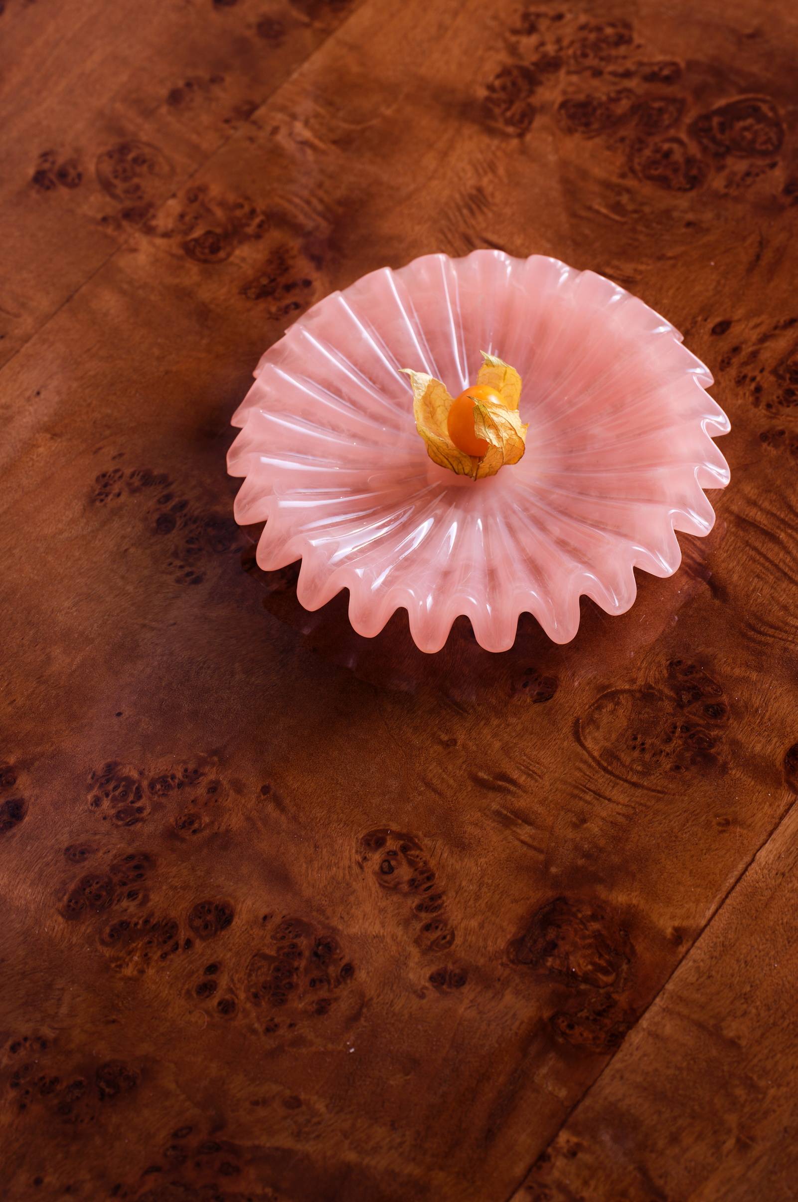 Aldis-fatet har en veckad design som är perfekt för servering av snacks eller desserter. Det är tillverkat med precision och dess lekfulla form ger ett härligt inslag till din dukning. Detta fat är idealiskt för att förbättra presentationen av måltider och erbjuder både estetik och praktiska egenskaper för daglig användning.