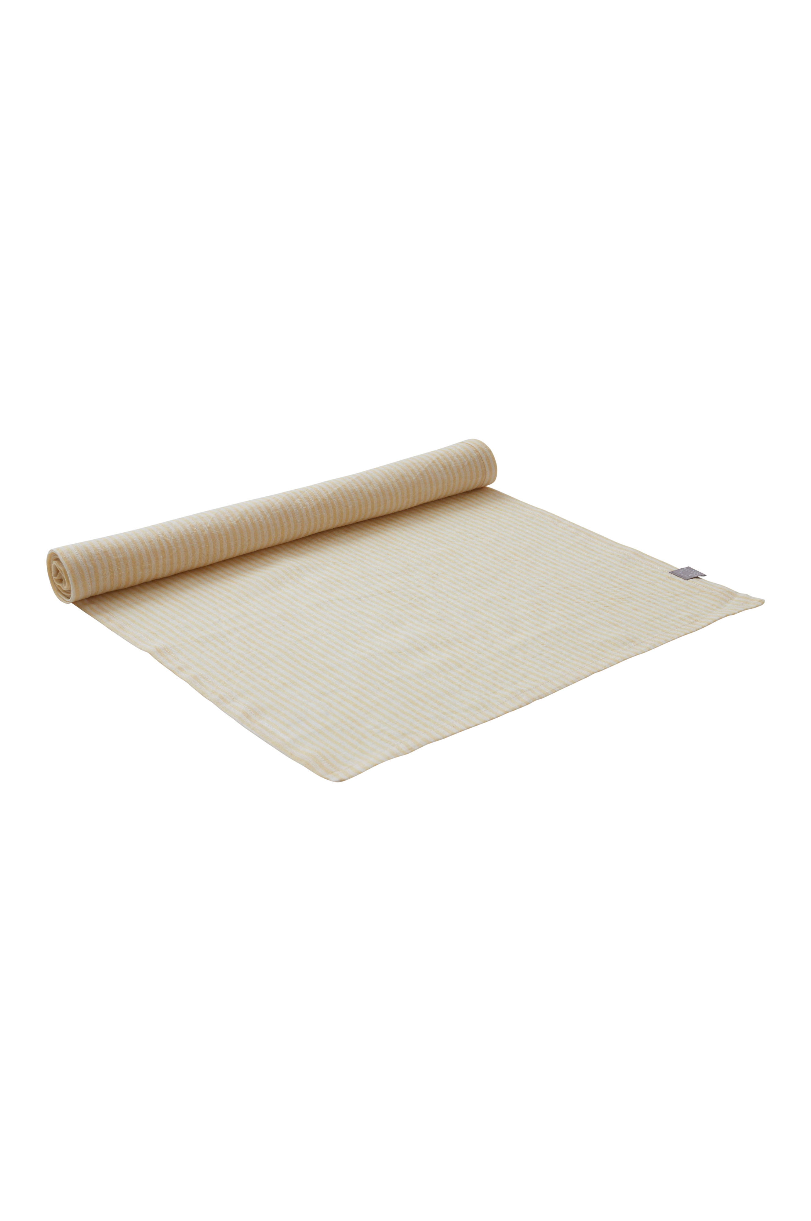 1-pack löpare i randvävt linne. Den garnfärgade randen i kombination med linne ger en rustik och naturlig känsla. Tyget är lättskött och du väljer om du vill ha en slät, struken look eller en avslappnat ostruken stil.