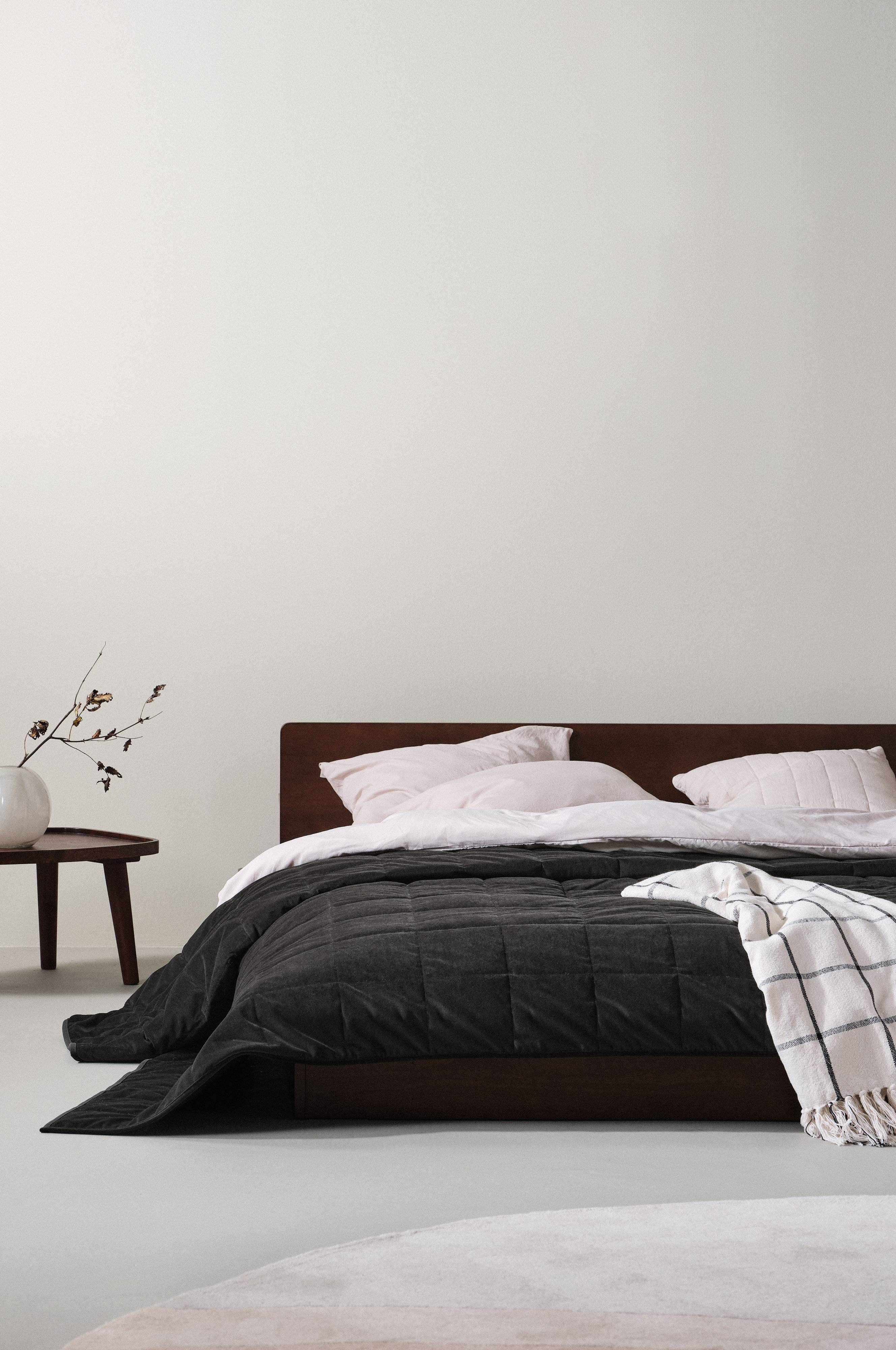 Enfärgat överkast av polyester med diskret rutquiltat mönster. Tyget har mjuk yta och lätt vaddering som hålls på plats av quiltningen. Obs! Kuddfodral medföljer ej, köps separat.