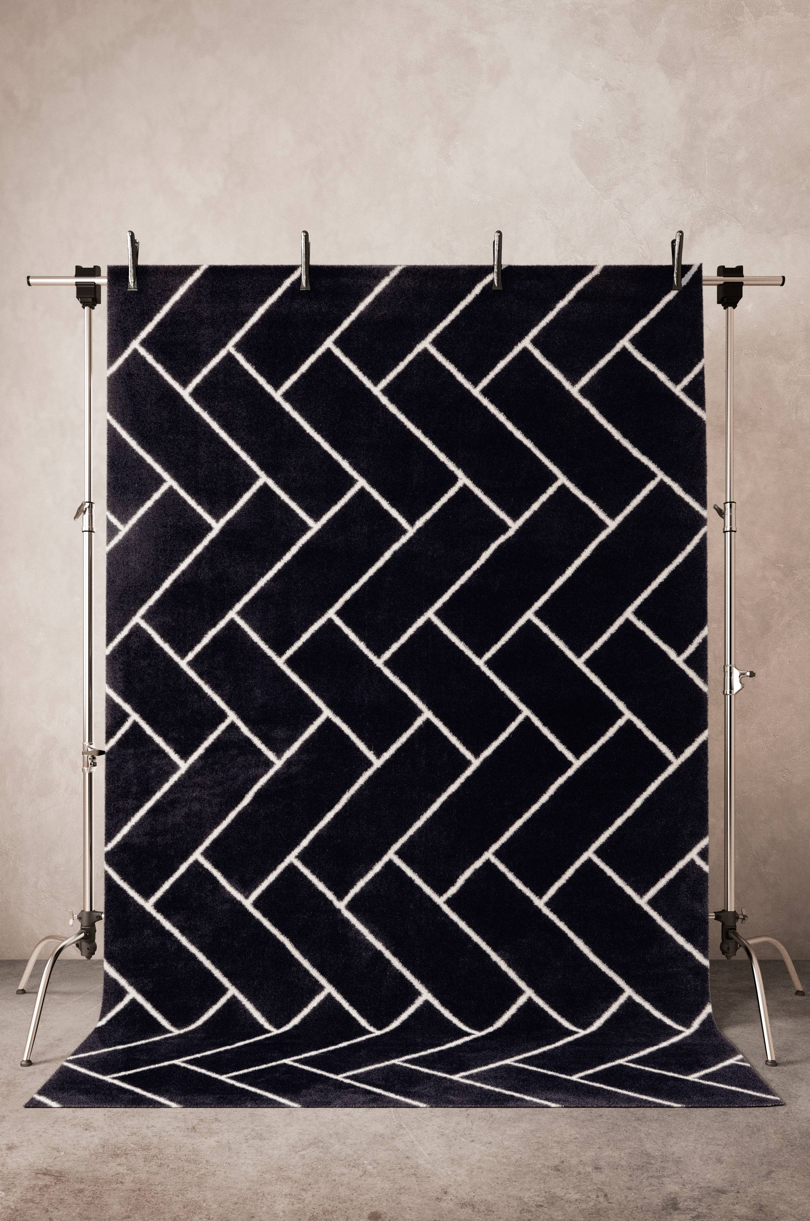 Enfärgad, slätvävd luggmatta av polyester med grafiskt mönster. Den täta luggen är mjuk, ger rummet värme och dämpar ljudet. Lugghöjd 10 mm, 1400 g/m².