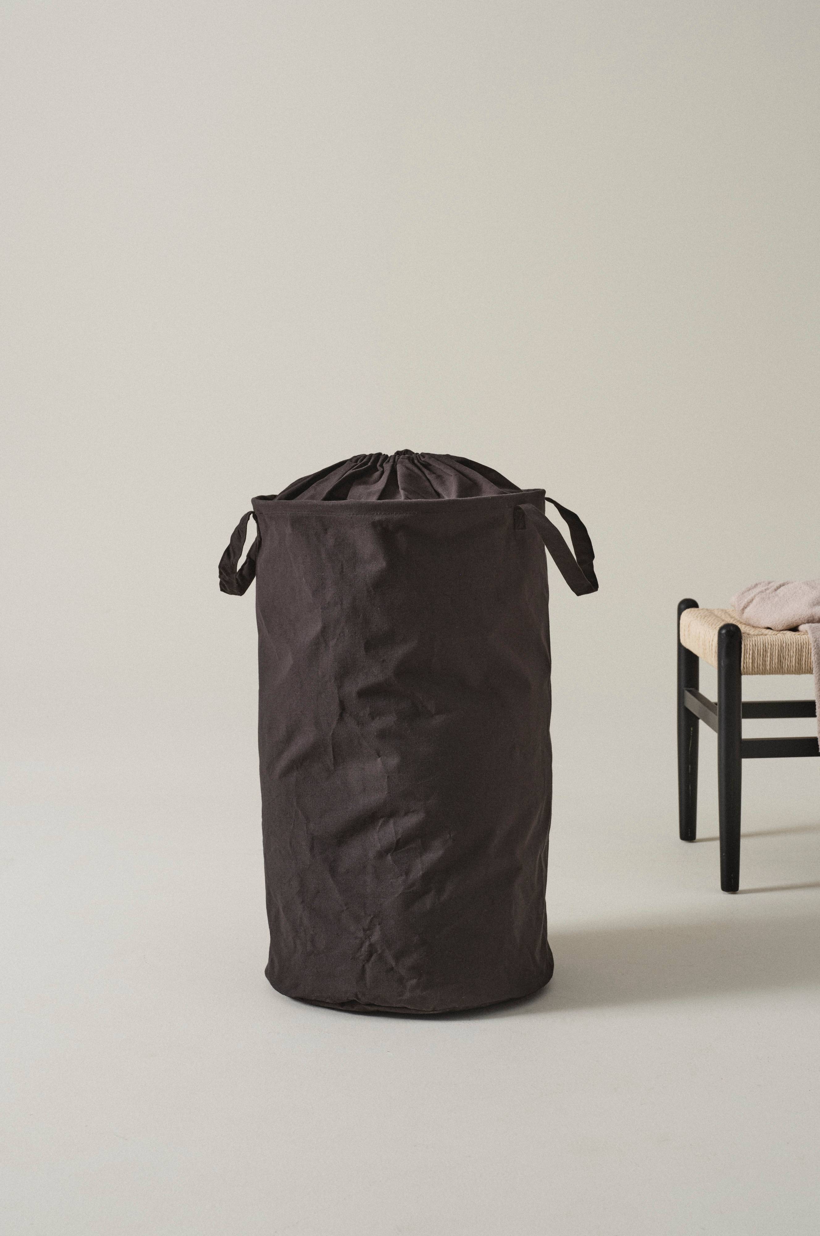 Vävd, enfärgad tvättkorg i bomull och polypropylen. Tvättkorgen har handtag på båda sidor och dragsko för tillslutning. Förvara din tvätt i en prydlig och stilren tvättkorg.