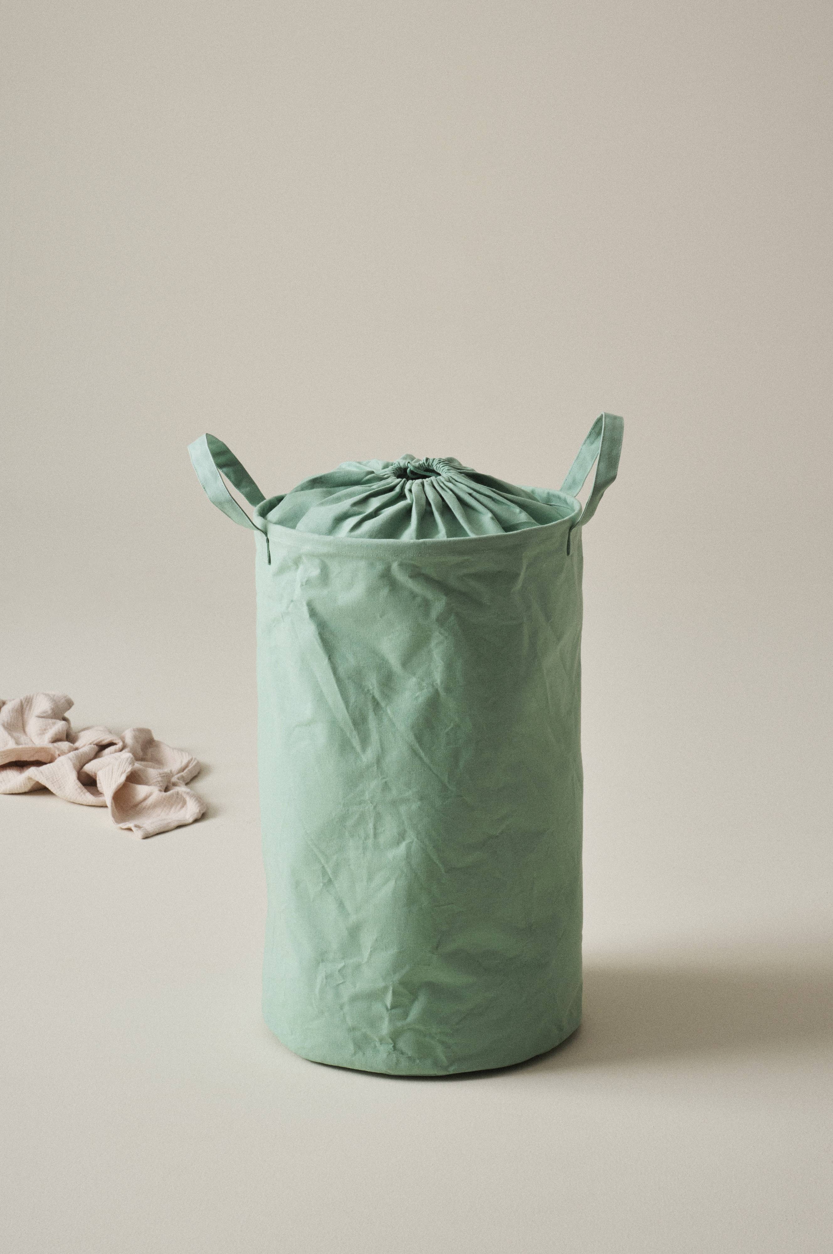 Vävd, enfärgad tvättkorg i bomull och polypropylen. Tvättkorgen har handtag på båda sidor och dragsko för tillslutning. Förvara din tvätt i en prydlig och stilren tvättkorg.