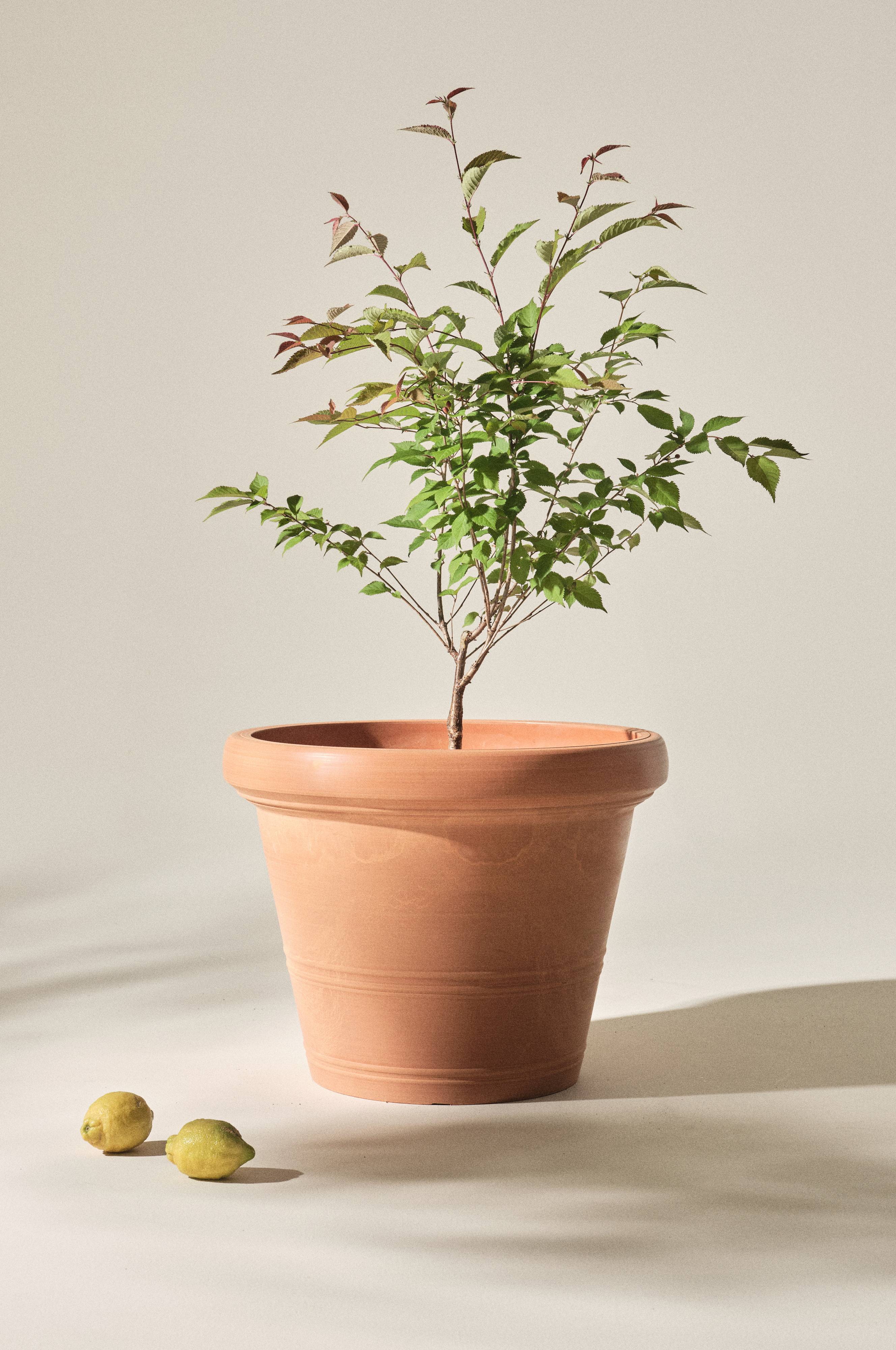 AMY är en utomhuskruka som har formen av en klassisk lerkruka, men är tillverkad av återvunnet kompositmaterial. Fördelen med materialet är att krukan är lätt att hantera, den är tålig och väger en bråkdel av en ler- eller stenkruka. Den traditionellt formade krukan har hel botten med en stansad plugg som du kan trycka ut om du vill ha hål för dränering i botten. Krukan fungerar förstås lika bra inomhus.