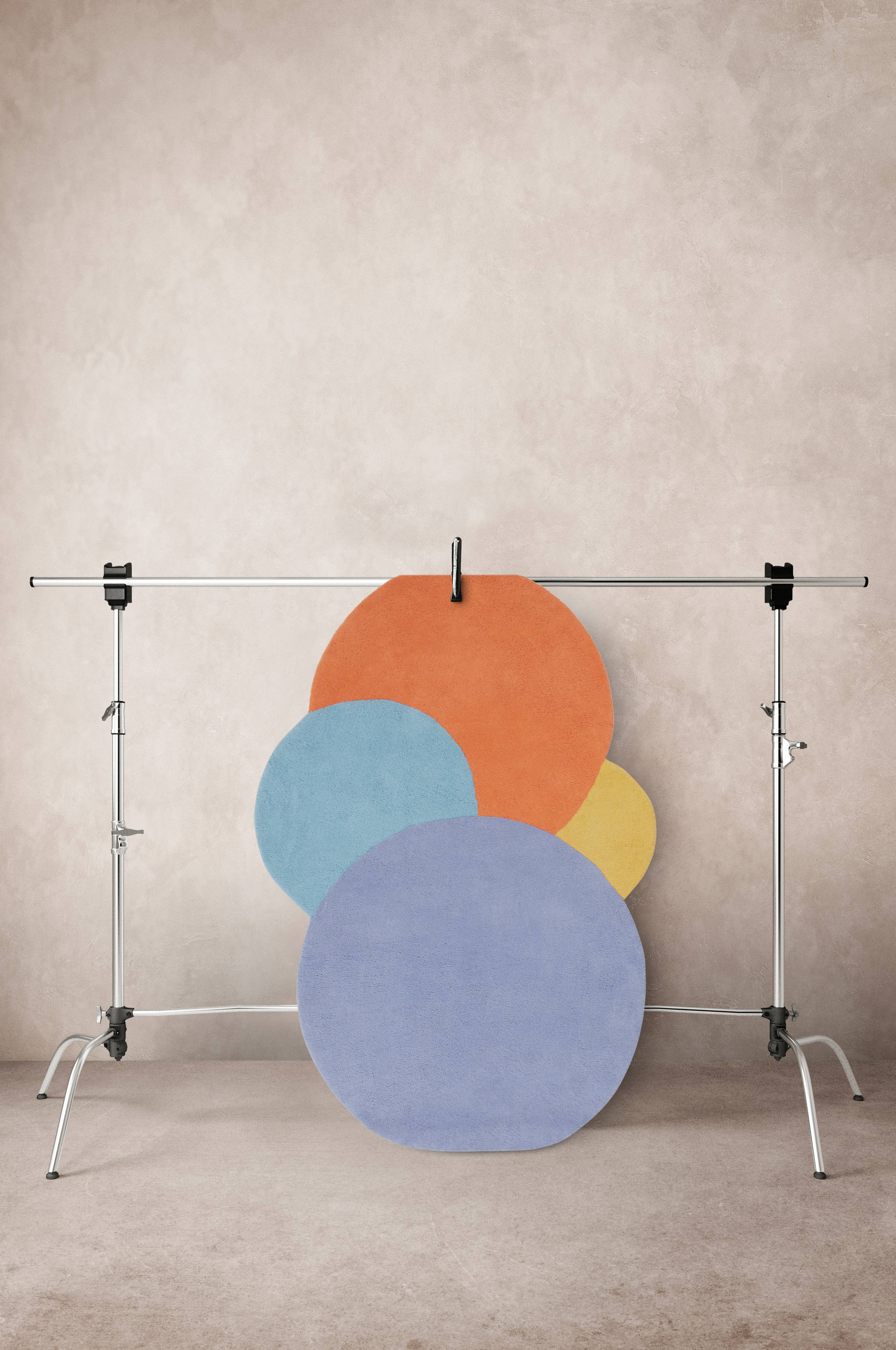 Handtuftad matta tillverkad av ekologisk bomull. Den sköna mattan har mjuk lugg och är en geometrisk lek med cirklar och färger i en glad kombination. Mattan är mjuk att sitta på och passar fint i barnrummet.
