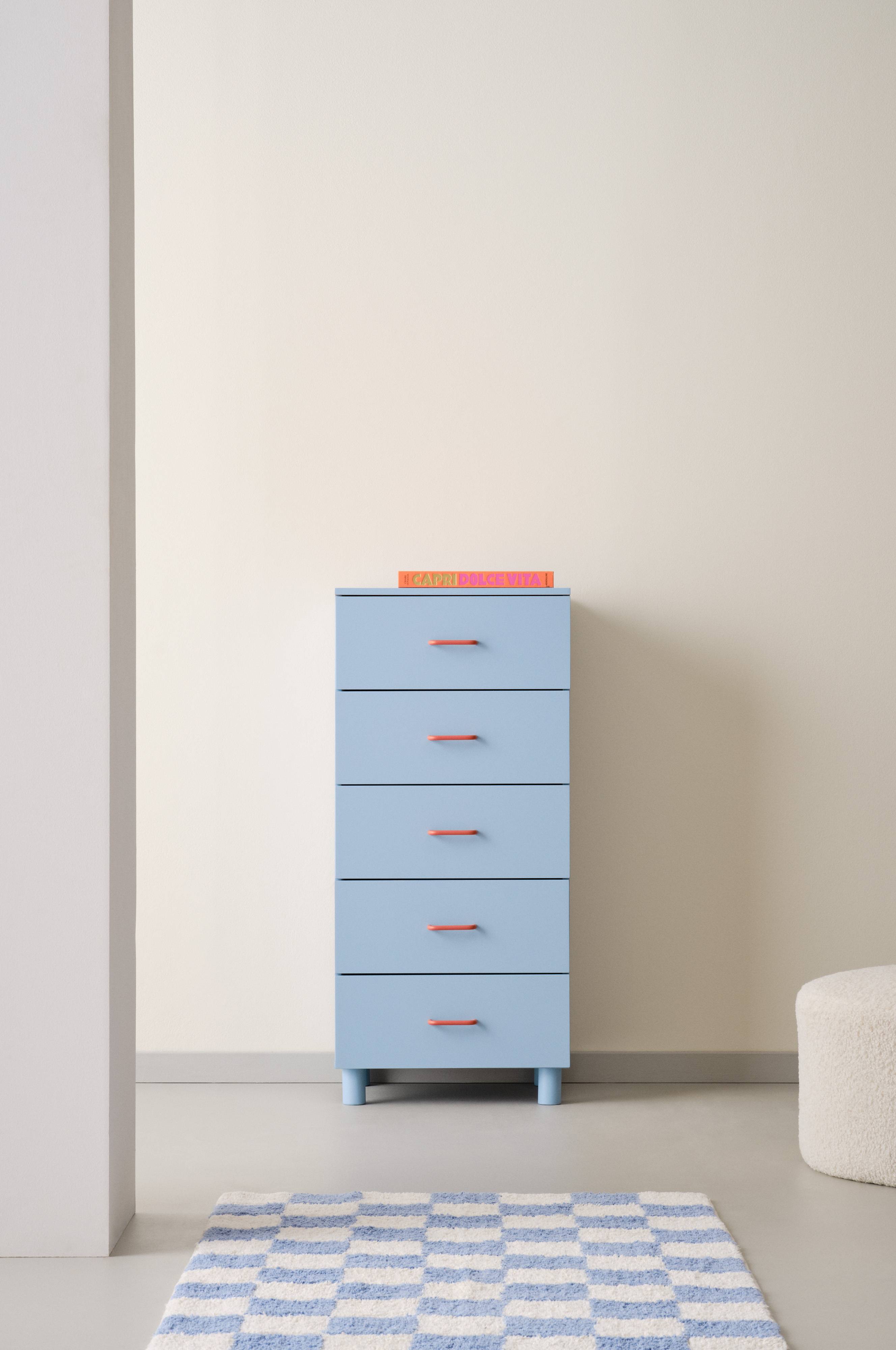 Byrå för de unga trendsättarna. BIBBI-lådan har fem rymliga MDF-lådor, perfekta för att organisera kläder eller leksaker. Byrån är designad med både stil och säkerhet i åtanke och måste fästas i väggen. Den här byrån ingår i BIBBI-familjen och kompletterar enkelt andra matchande produkter.