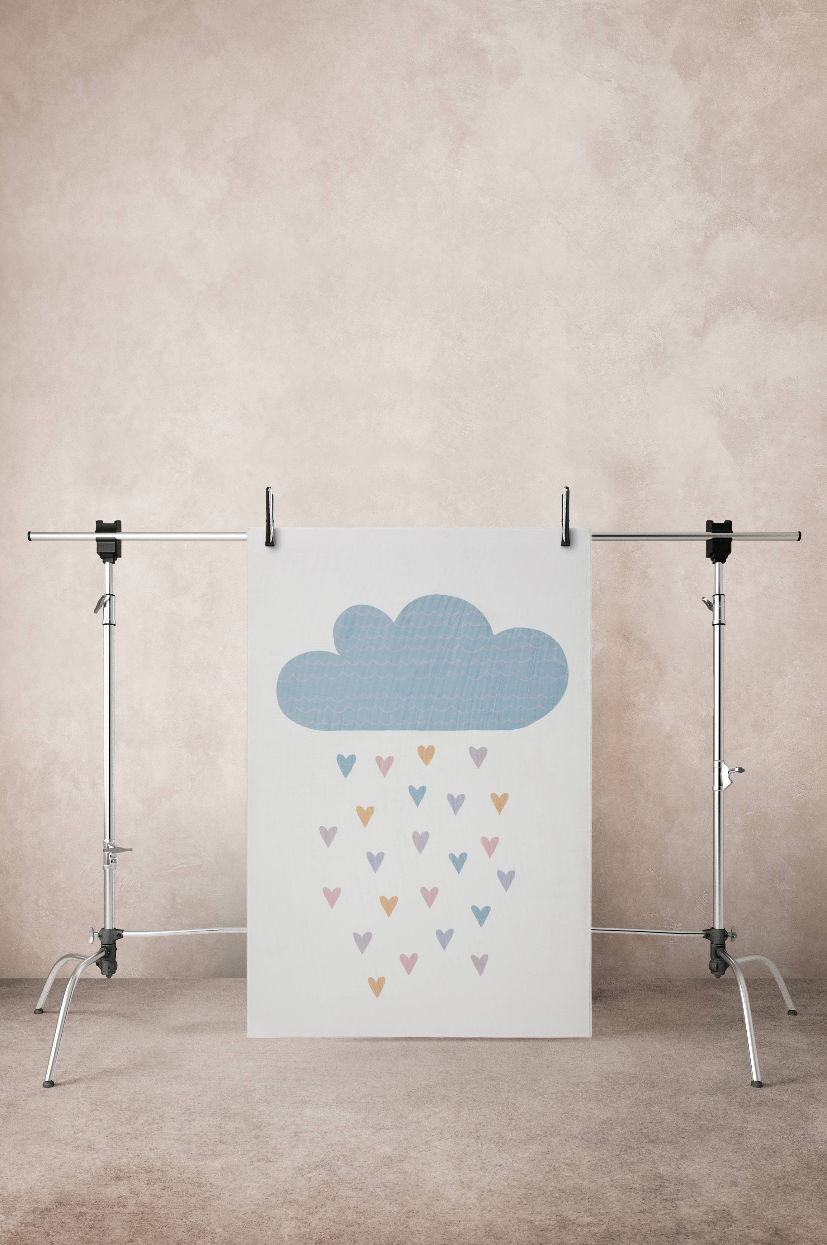 Slätvävd matta av polyester med tryckt mönster. Mattan är mycket mjuk och härlig med fleecekänsla, underbar att sitta och leka på i barnrummet. Ett moln som det regnar kärlek från passar förstås i många rum. Mattans baksida är av canvas. Tjocklek 0,8 cm. 1200 g/m².