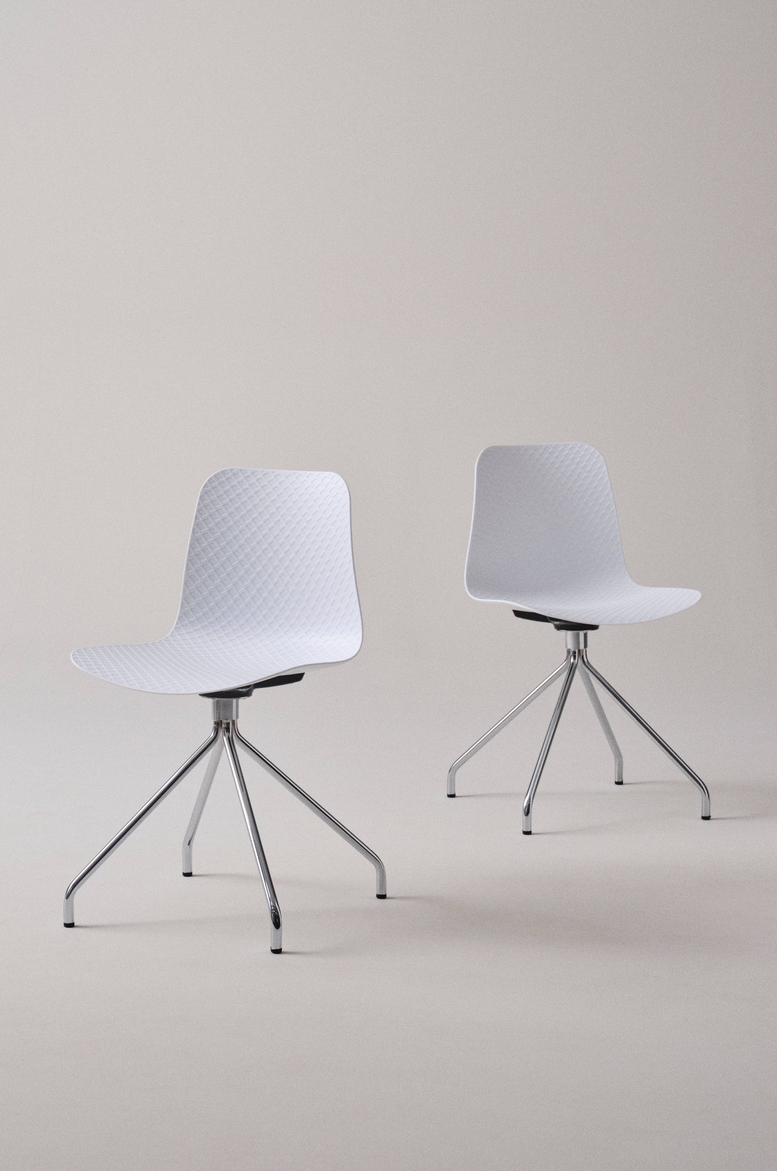 2-pack stolar med formgjuten sits och metallben. En modern stol med runda former som är skön att sitta på under hela middagen och långt därefter. Ej snurrbar. Viss montering krävs.