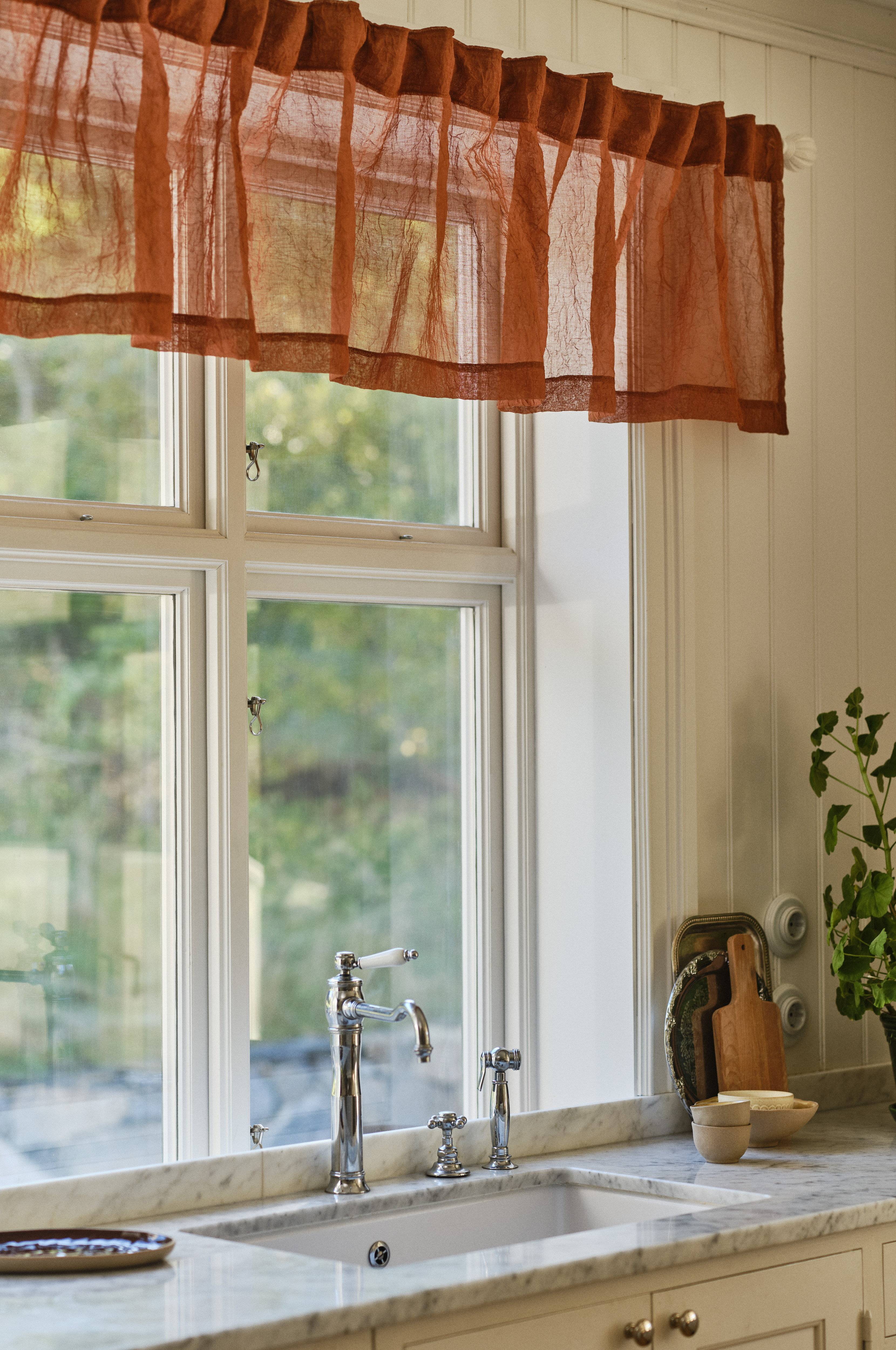 Enkla och skira gardiner som passar perfekt i köket.