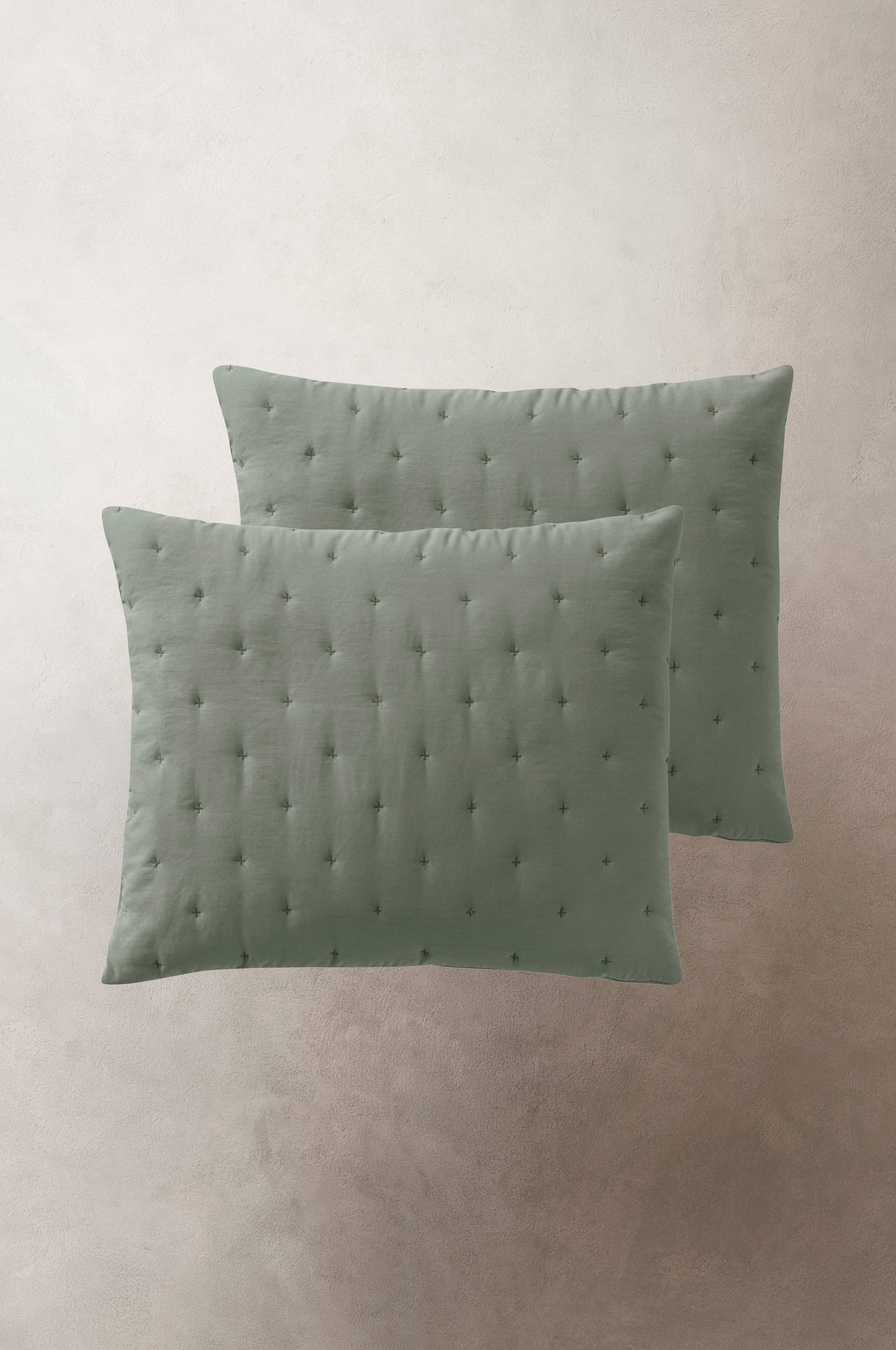 2-pack kuddfodral sytt i mjuk polyester som tvättats för att få en skön känsla. Kuddfodralen har enkel quiltning av broderade små kryss som bildar ett diskret mönster på framsidan. Tyget har en lätt vaddering som hålls på plats av quiltningen. Baksidan är slät. Dold dragkedja på baksidan.