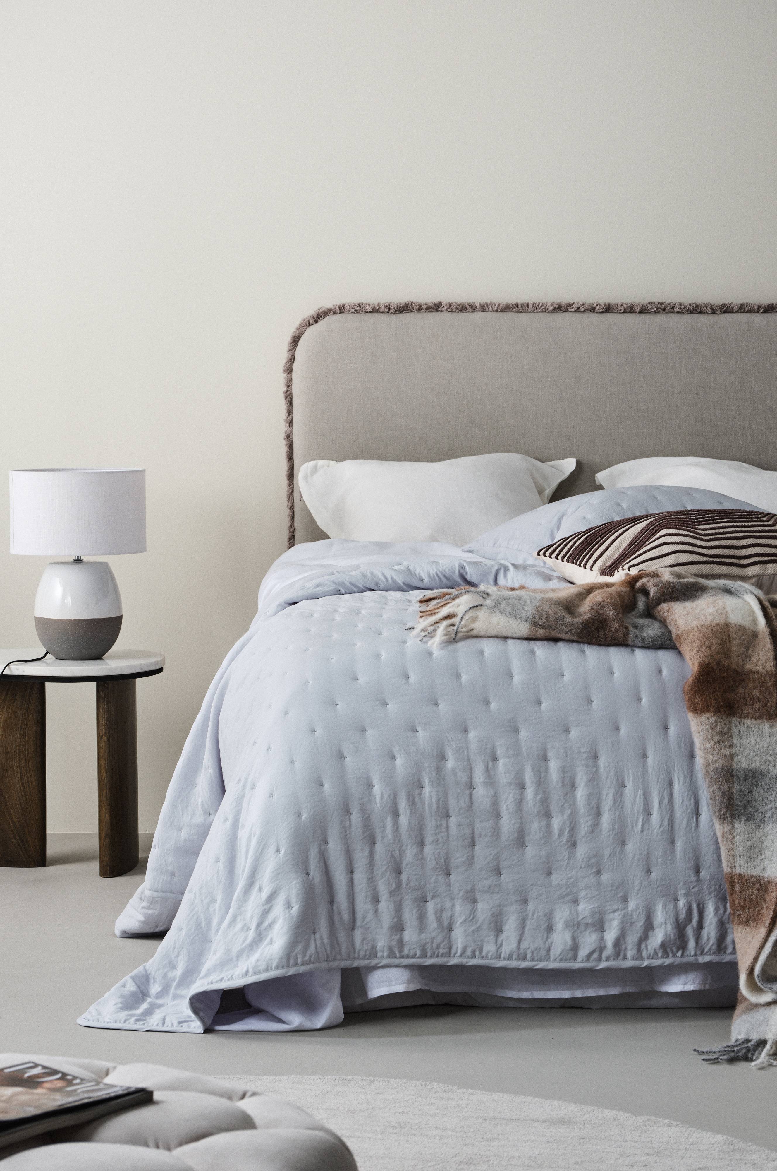Överkastet är lätt, så det är enkelt att bädda dubbelsängen. Underbart mjukt.