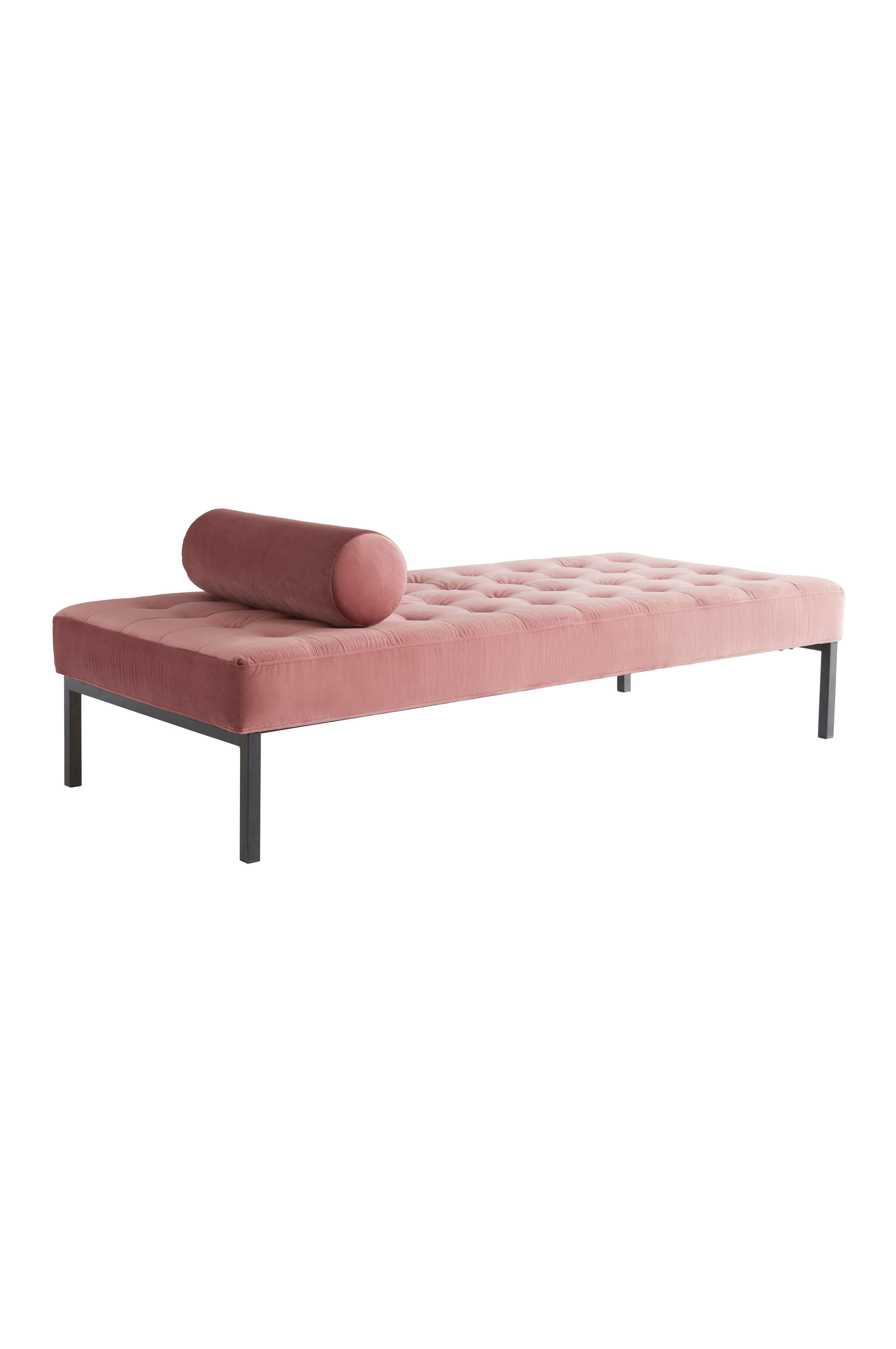 CARMEL dagbädd i sammet ger med sin stilrena form i kombination med det vackra sammetstyget, cylinderformade kudden och djuphäftade sittdynan, ett extraordinärt intryck som lyser upp vilket rum som helst.