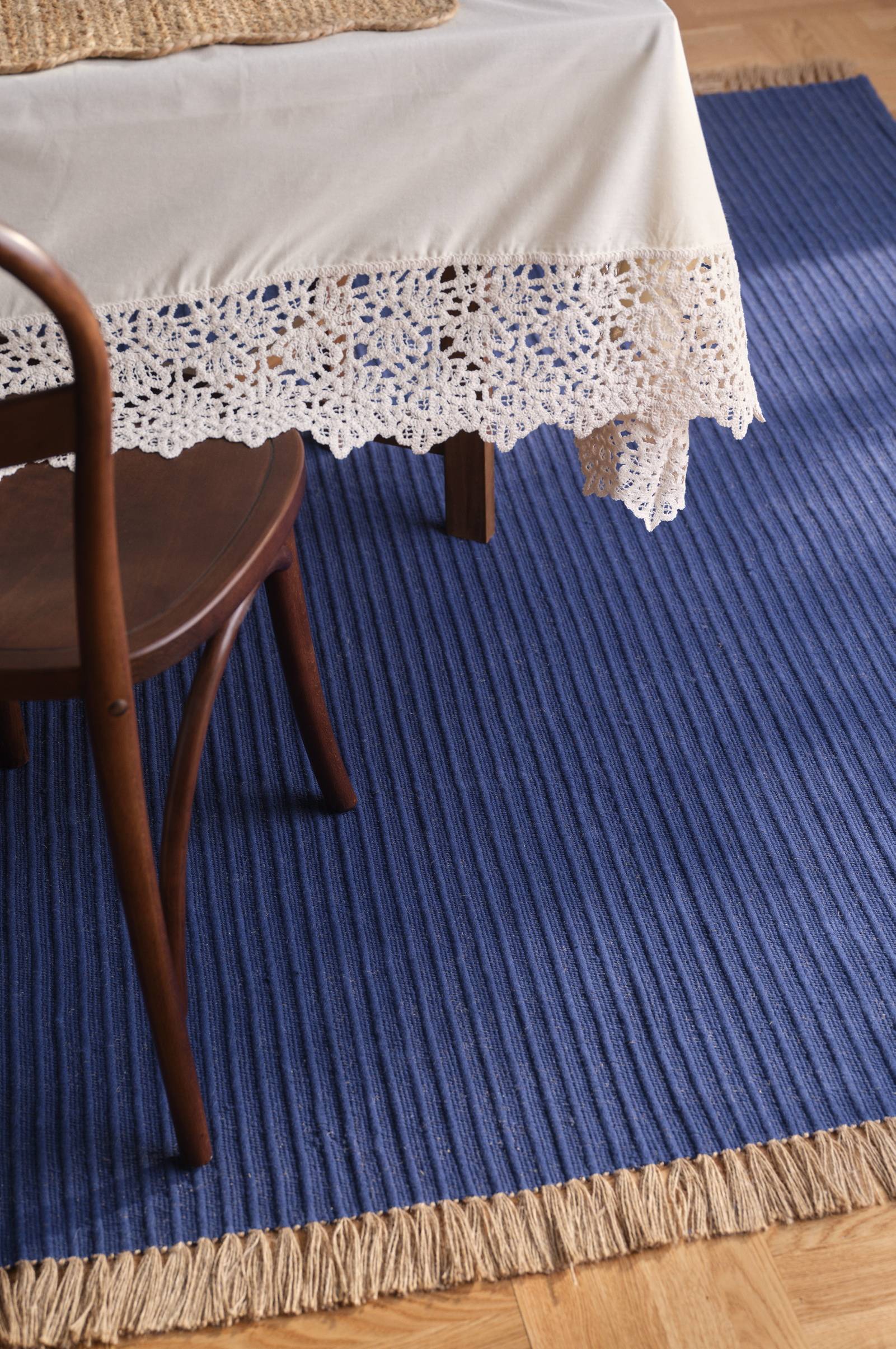 CHANNA-mattan är en elegant bomullsmatta som passar perfekt i vardagsrummet, hallen eller köket. Dess minimalistiska design kompletterar olika inredningsstilar och ger textur och komfort under fötterna. Denna matta är idealisk för att skapa en mysig atmosfär i ditt hem och är tillräckligt mångsidig för att passa flera utrymmen. Dess hantverk garanterar en charmig estetik samtidigt som den förbättrar dina vardagsrum. Njut av blandningen av tradition och modern design med CHANNA.