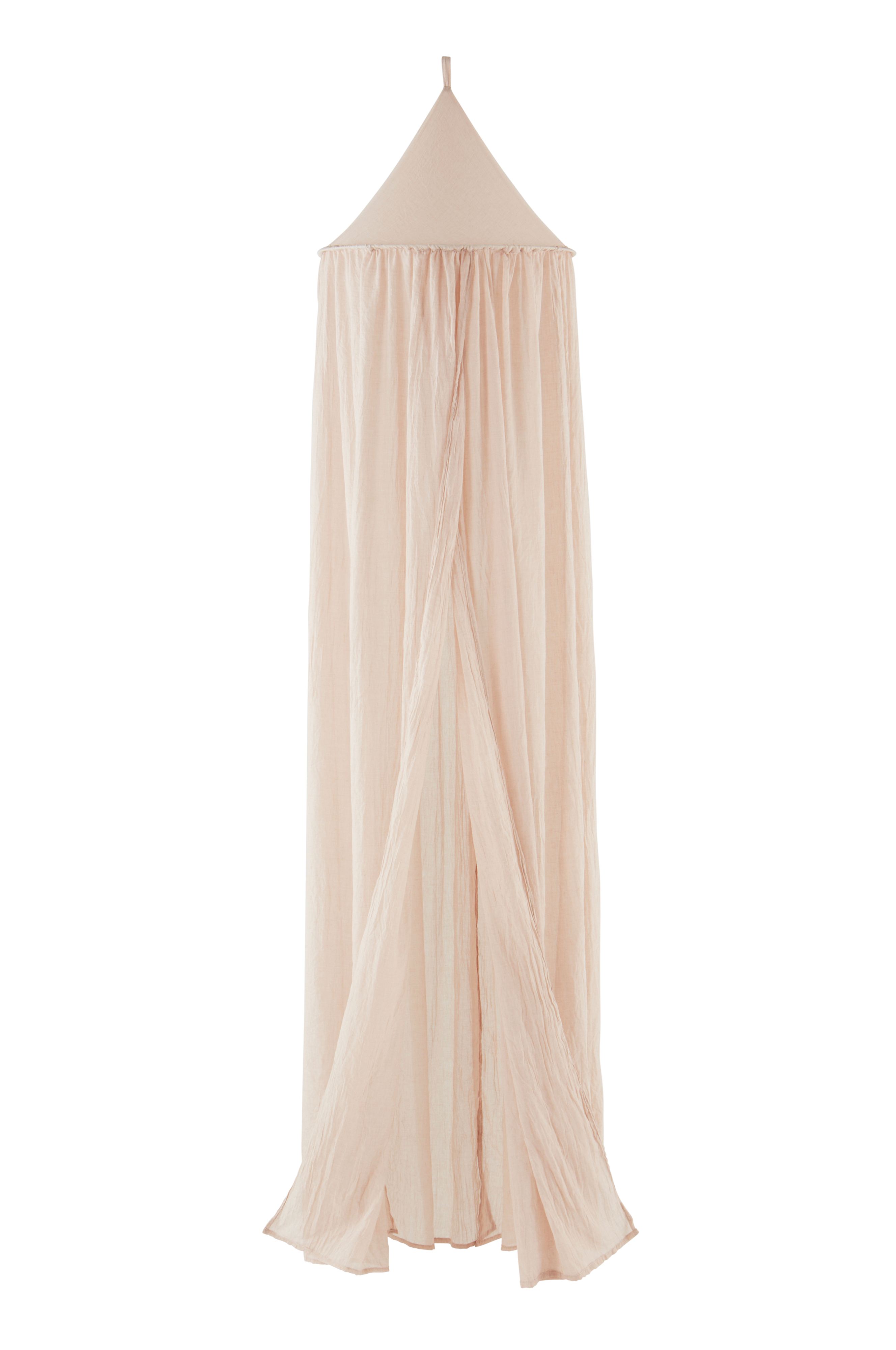 Sänghimmel tillverkad i mjuk bomullsblandning som ger ett fint fall. Denna sänghimmel är öppen både i framkant och bakkant, vilket är en fördel om du vill ha en sänglampa på väggen bakom sängen. Fäst sänghimlen i barnrummet för att skapa en mysig och ombonad atmosfär över barnsängen.