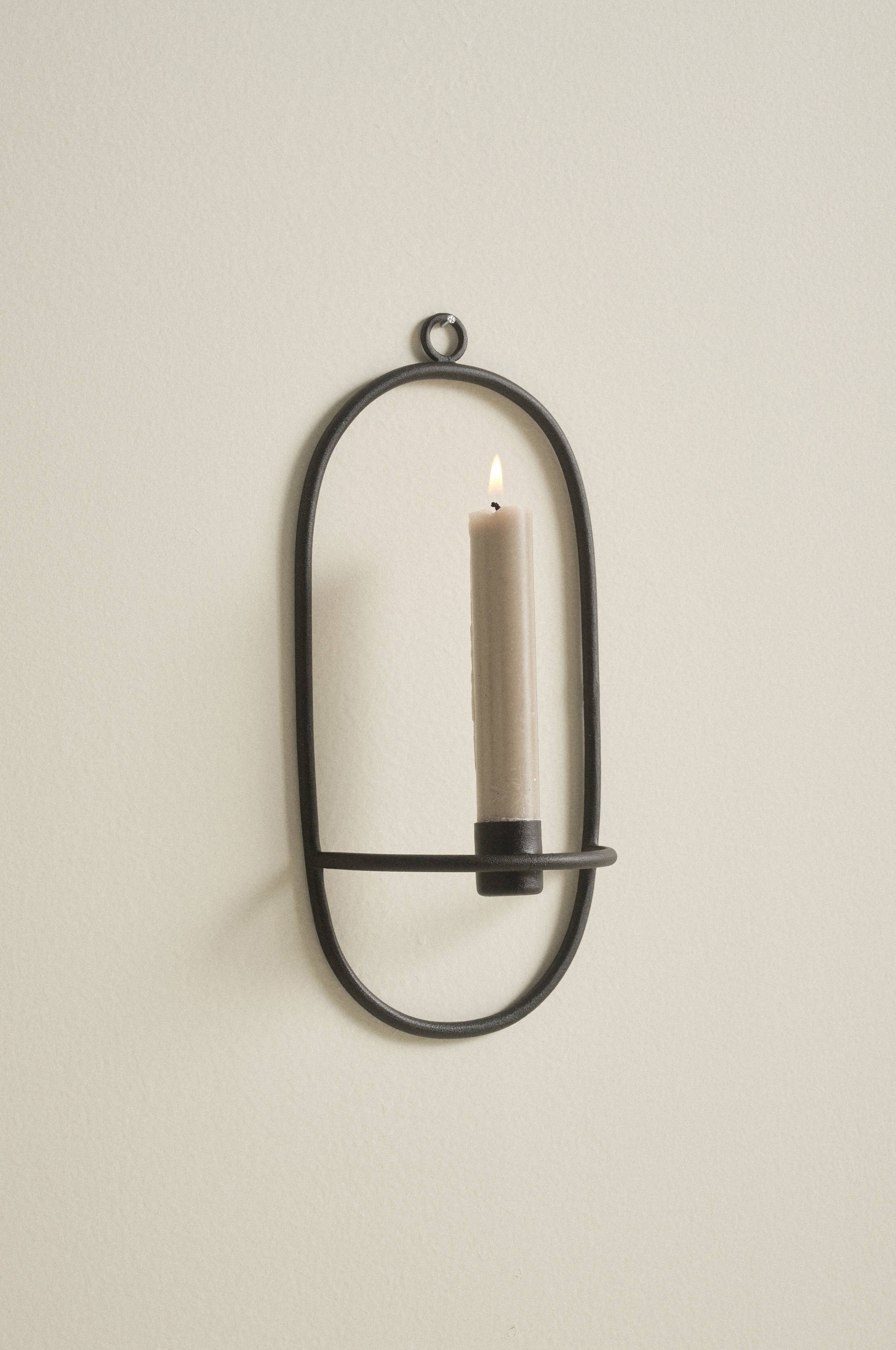 Oval väggljusstake av järn med pulverlackerad yta. Designen är enkel och stilren och ger hög mysfaktor när kvällarna är mörkare. Öglan upptill gör väggljusstaken enkel att hänga upp. Ljus medföljer ej.
