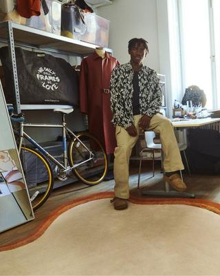 På samma plats som jag hämtar inspiration när jag gör kläder: från kontraster. I det här fallet arbetade vi med kontraster i färgerna. Att jag utgår så mycket från kontraster handlar mycket om mig och mina erfarenheter. Som sjuåring kom jag med min familj från Västafrika till Sverige. Jag växte sedan upp i ett multikulturellt område i Örebro, där jag har fått äran att lära känna riktigt bra människor från hela världen. Min uppväxt har lärt mig uppskatta det vackra som föds ur kontraster. Jag går alltid tillbaka till mig själv inför en skapandeprocess och utgår från möten mellan olika världar, element och människor.