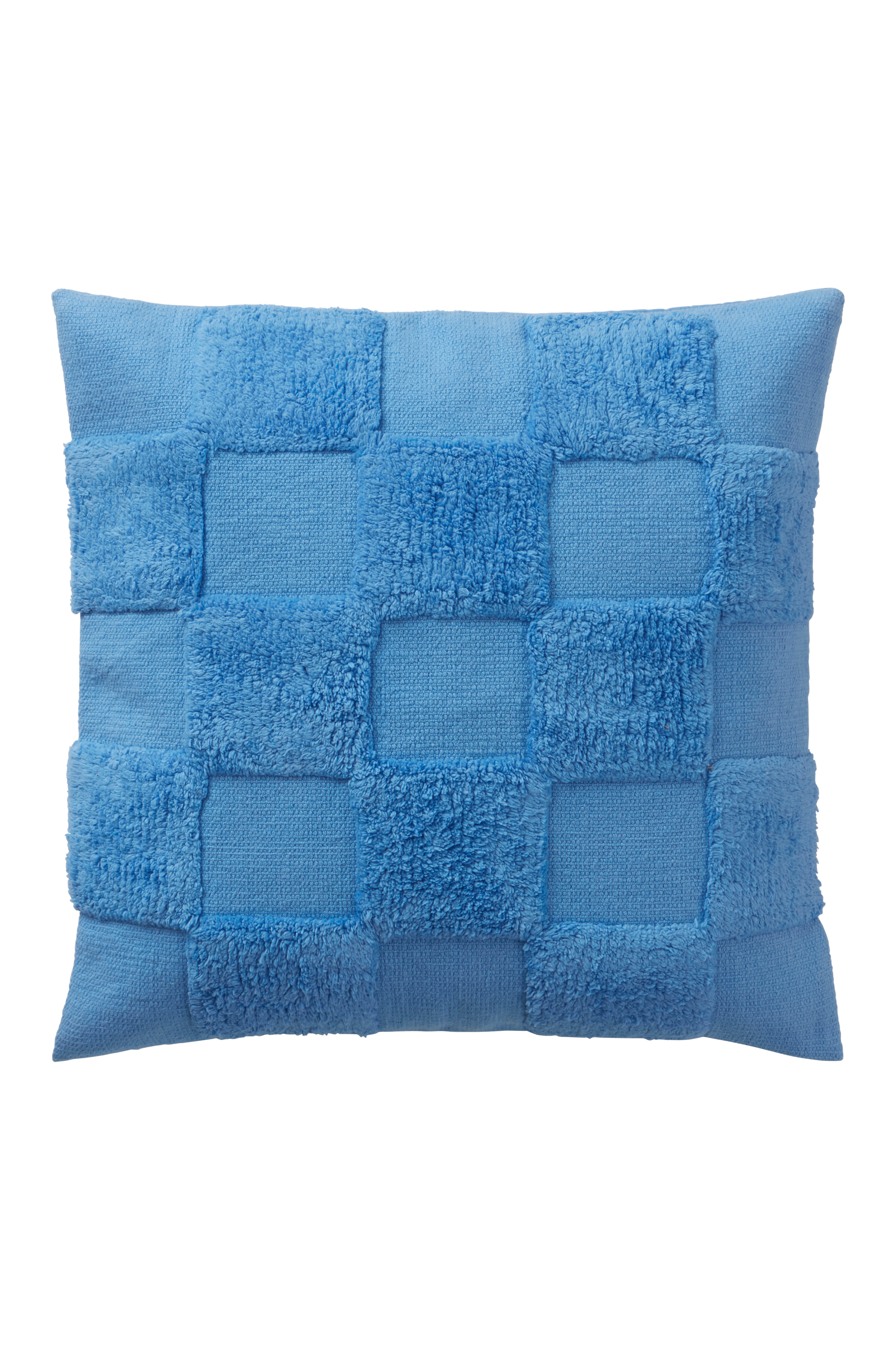 1-pack kuddfodral av bomull med schackrutigt mönster ton-i-ton, där varannan ruta är tuftad och har mjuk lugg. Enfärgad baksida med dold dragkedja.