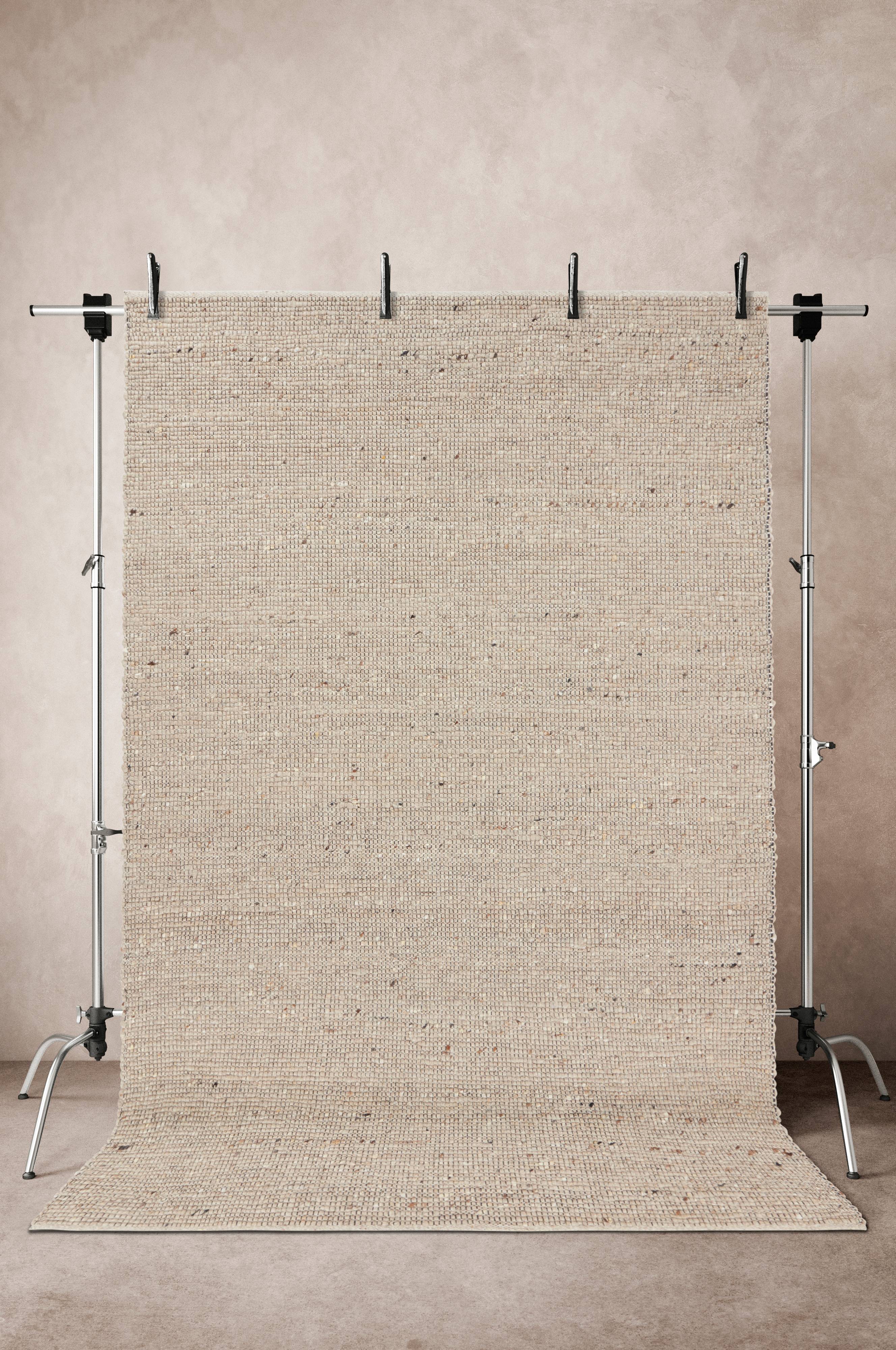 Handvävd matta av ull med liten inblandning av bomull och polyester. CURB har vävts i melerat garn med varierande tjocklek vilket ger en matta som upplevs enfärgad och samtidigt livfull. Den melerade färgen gör mattan mindre känslig för fläckar. Ull är ett varmt och mjukt material som med sin naturliga känsla alltid känns behaglig. Det fina hantverket gör varje matta unik. Tjocklek 1,2 cm. 2600 g/m².