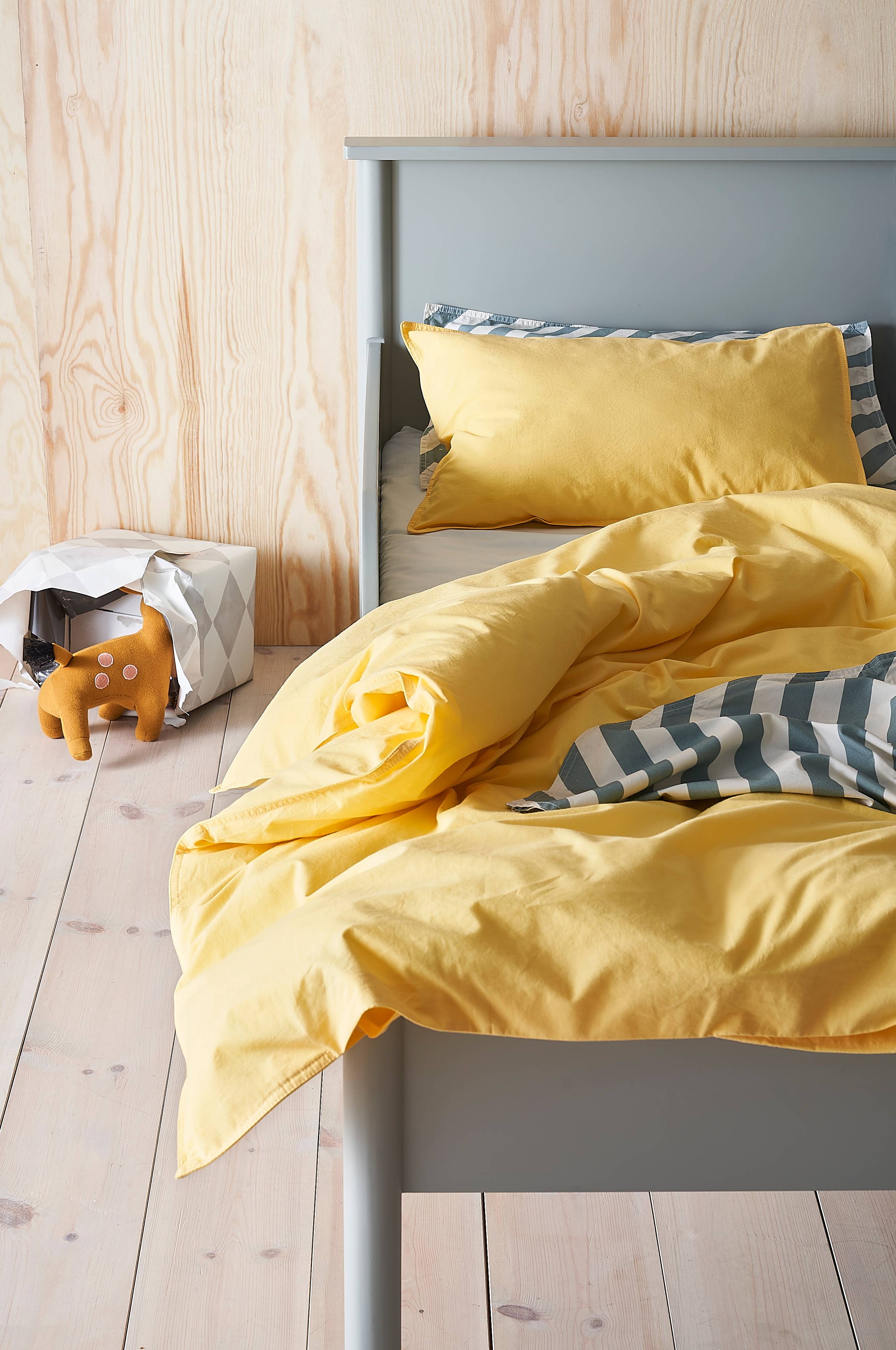 Påslakanset i 2 delar av ekologisk, plaggtvättad bomullspercale. Att bädda med bomull är luftigt och mjukt mot kroppen. Påslakansetet passar till spjälsäng. Trådtäthet på 200 tc. (Trådtätheten talar om antalet trådar, thread counts, per kvadrattum i ett tyg. Ju högre trådtäthet desto högre kvalité).