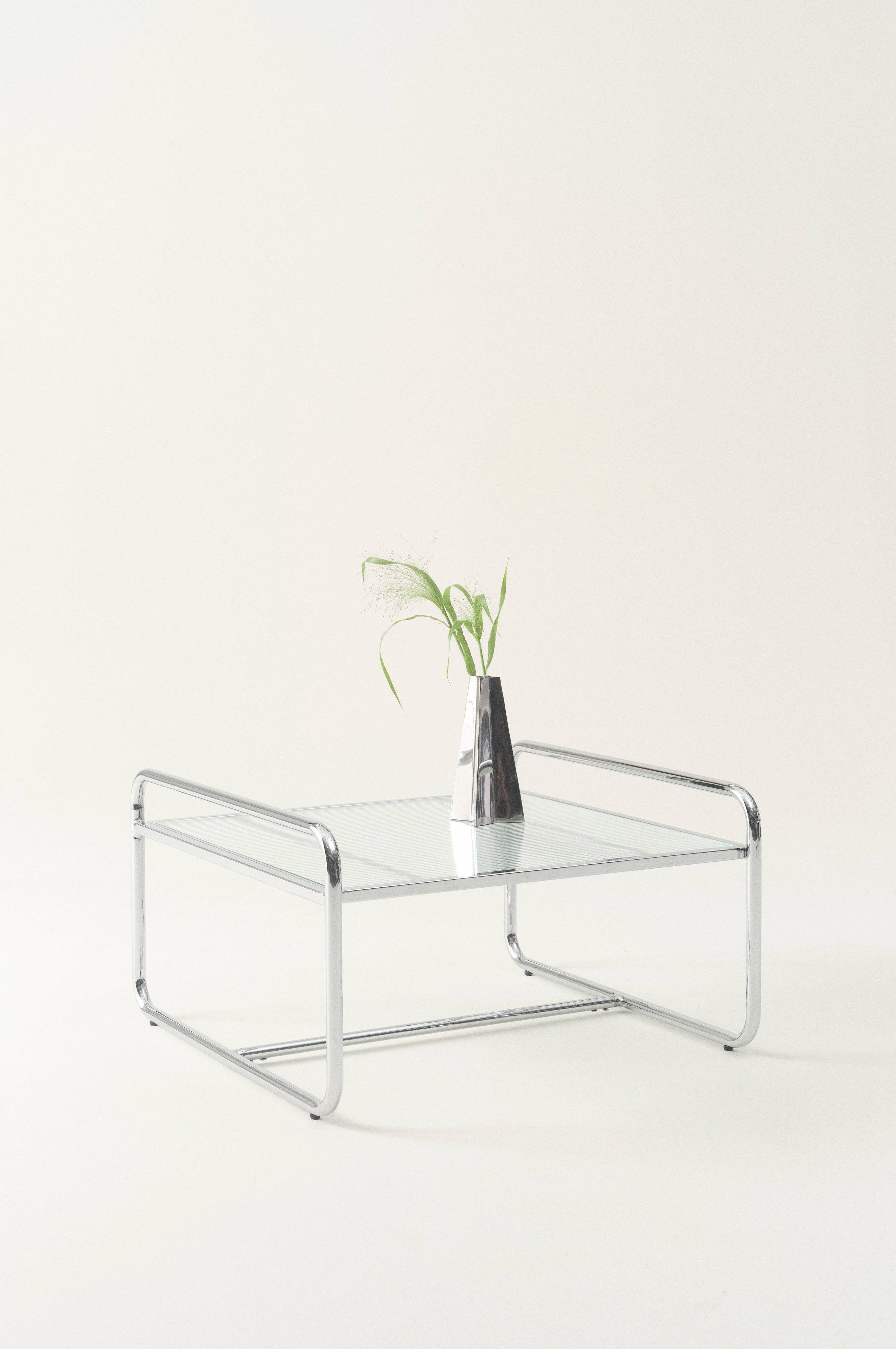 DOMINGO är ett kvadratiskt soffbord med bordsskiva av räfflat glas. Stommen är av stålrör med pulverlackerad alternativt kromad finish. Bordet har härlig 80-talskänsla och känns samtidigt oerhört nytt.