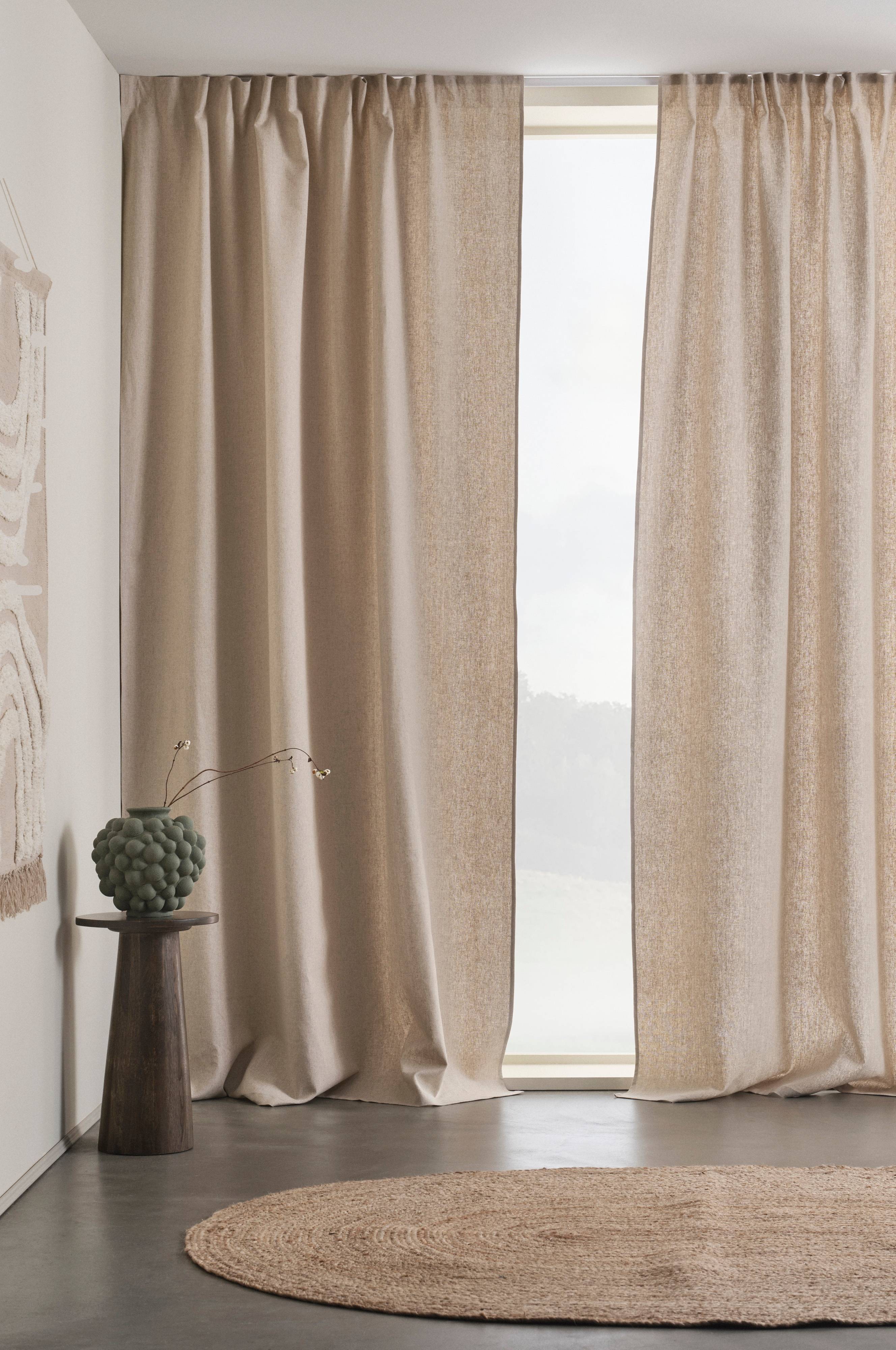 Gardinens längd kan variera något vid leverans, då naturmaterial som lin påverkas mer av till exempel temperatur än syntetmaterial. En variation på 1-2 cm från angivet mått är helt naturlig.