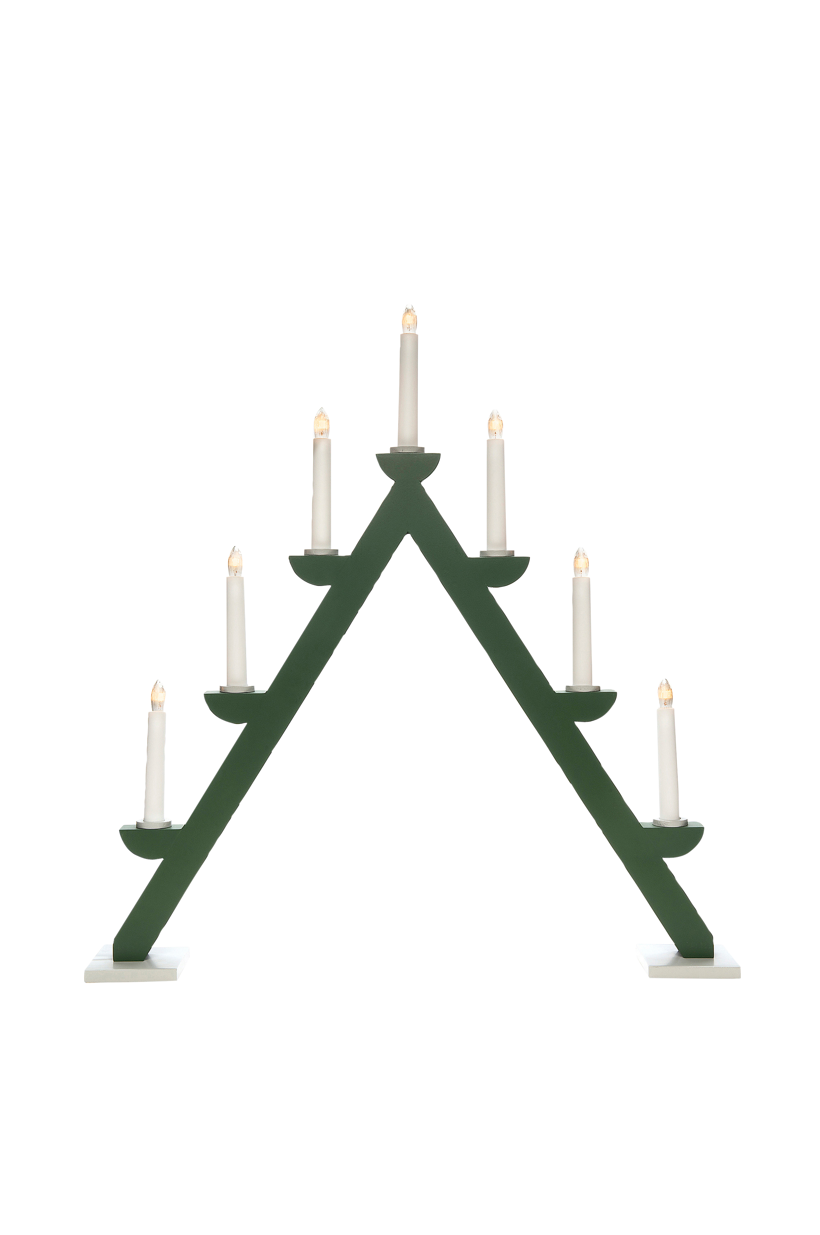En 7 armad elljusstake i lackerat trä och grå dekorationsringar 230V. Varmvita lampor. Anslutningskabel på 1,7 meter med sladdströmbrytare för manuell avstängning/påslagning. Höjd 44 cm och bredd 42 cm.