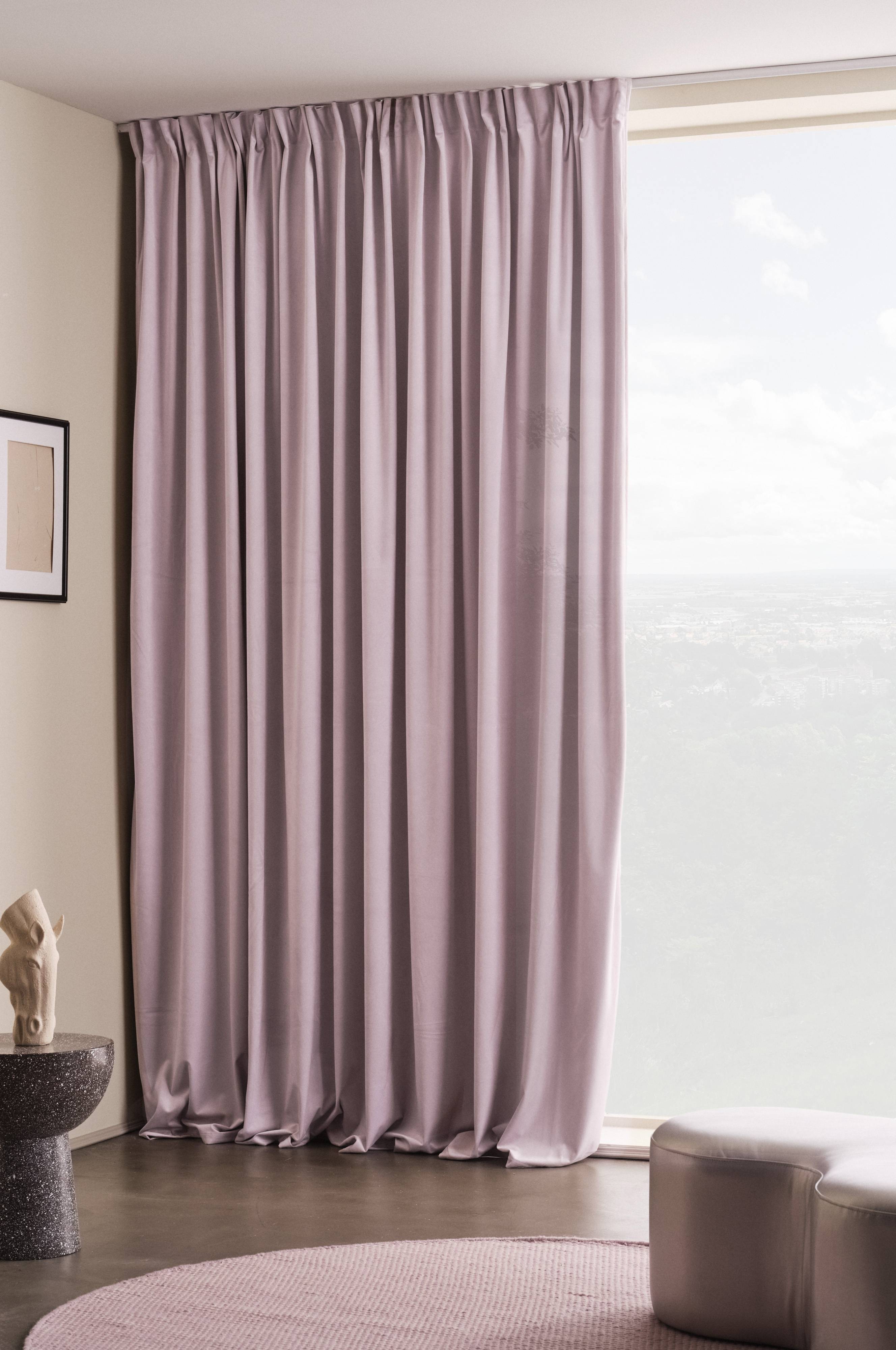 1-pack extra bred gardinlängd för mörkläggning. ELISE är i enfärgad sammet av polyester, varav hälften kommer från återvunnet material. Sammet har fin lyster och mjuk känsla, färgen skimrar vackert i olika ljus. ELISE är mycket prisvärd och lika fin på baksidan som på framsidan. Gardinen är tätvävd så att beläggning på baksidan inte behövs. Observera att de olika färgerna varierar i mörkläggning.