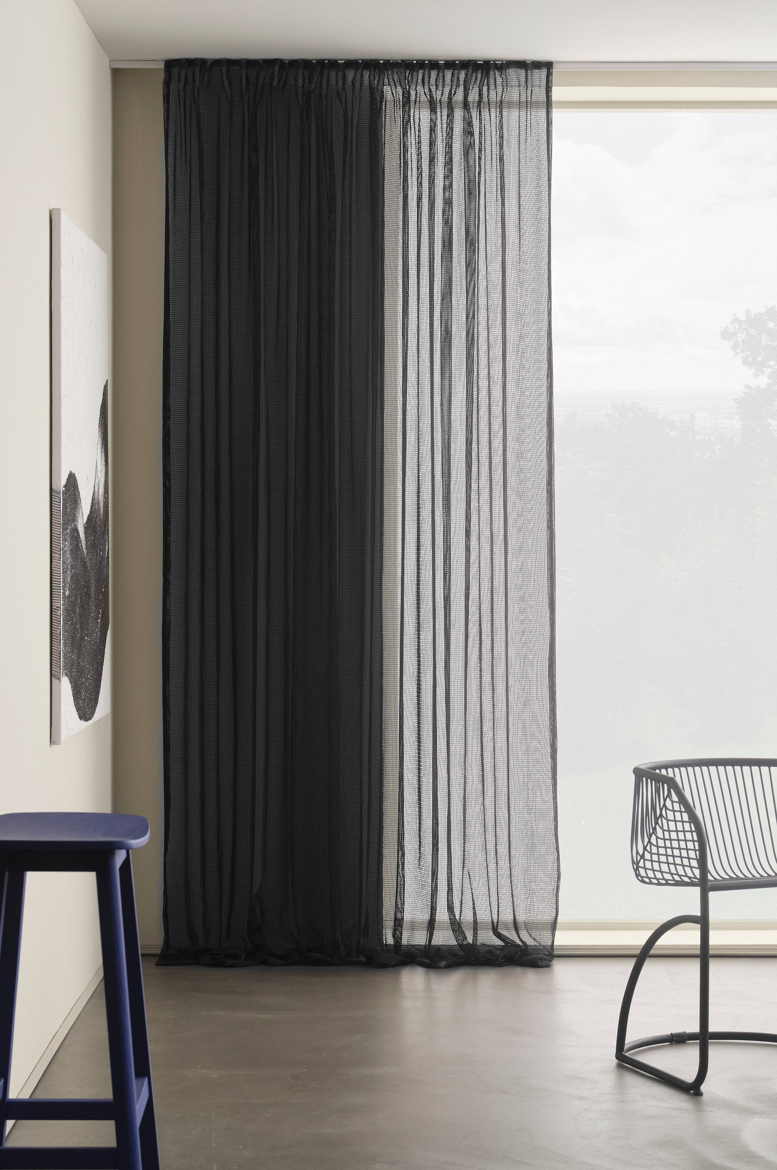 En gardinlängd i polyester. EMERY är en transparent gardin vävd med skira trådar i ett meshmönster, som ger gardinen ett modernt uttryck och vackert fall. Gardinen har påsytt multifunktionsband och kan hängas upp med fingerkrokar och dold hälla.
