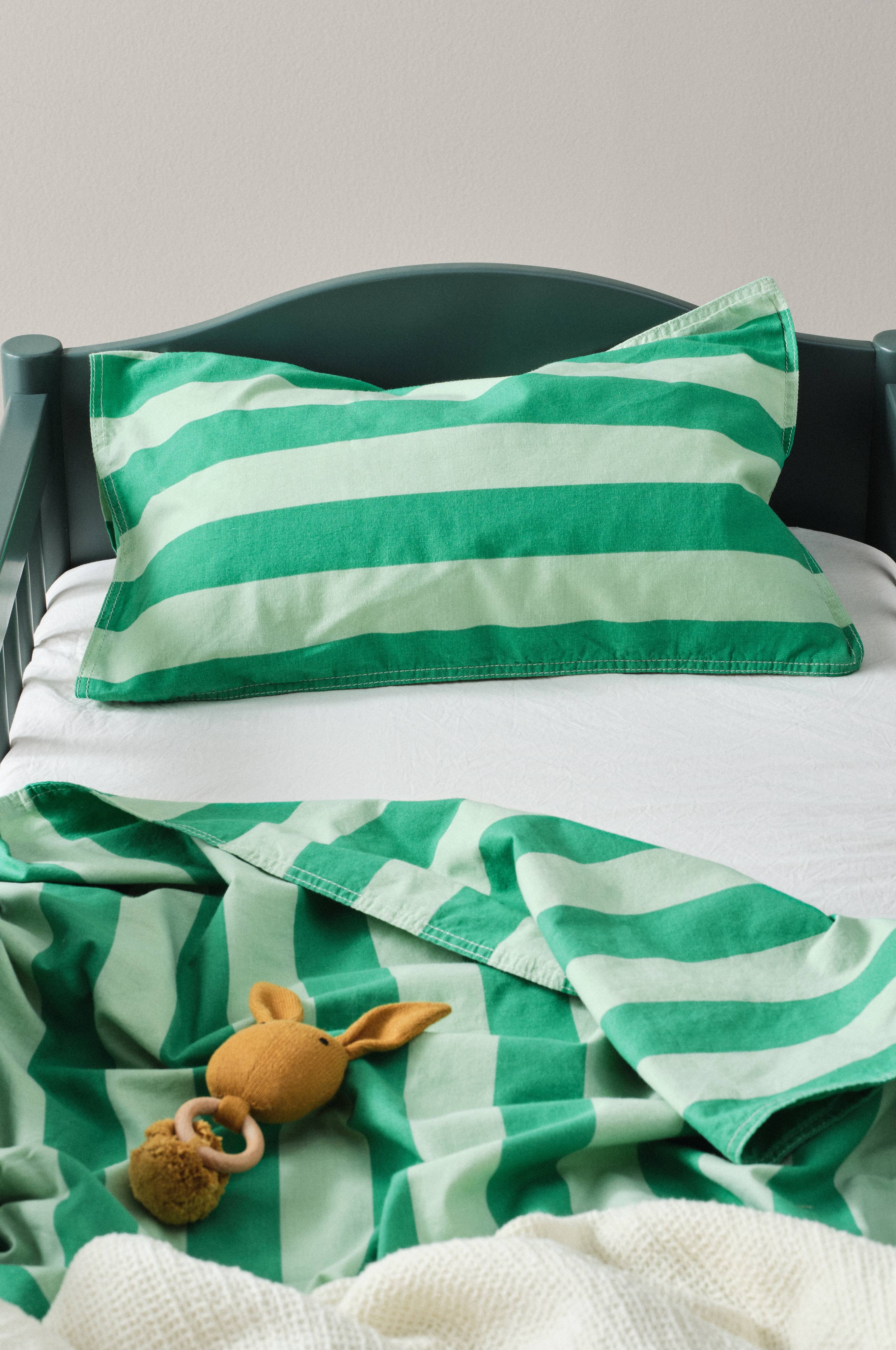 1-pack örngott av ekologisk bomull. Setet passar till spjälsäng. Blockrandigt mönstertryck är alltid fräscht, även till de minsta, och att sova i ekologisk bomull känns svalt och skönt mot huden. Örngottet är dessutom plaggtvättat vilket innebär att det tvättats efter sömnad och känslan blir extra mjuk och skön. Dubbelsöm runt om ger exklusiv känsla. Trådtäthet på 144 tc. (Trådtätheten talar om antalet trådar, thread counts, per kvadrattum i ett tyg. Ju högre trådtäthet desto högre kvalité).