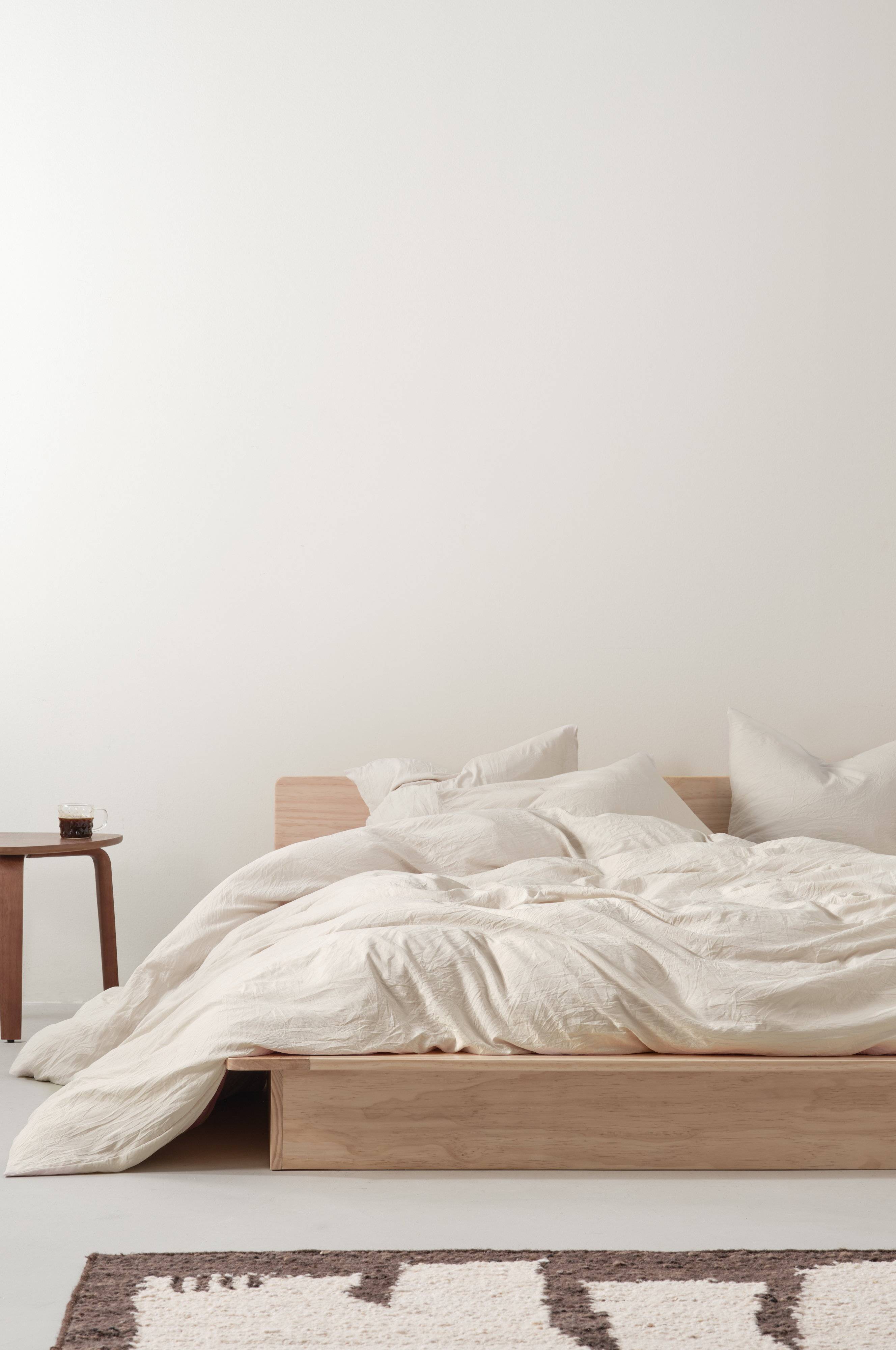 Påslakanset i tre delar, ett extrabrett påslakan och två örngott, i supermjuk, tvättad kvalité. Tyget är en mikrofiber av polyester som är lätt och snabbtorkande.