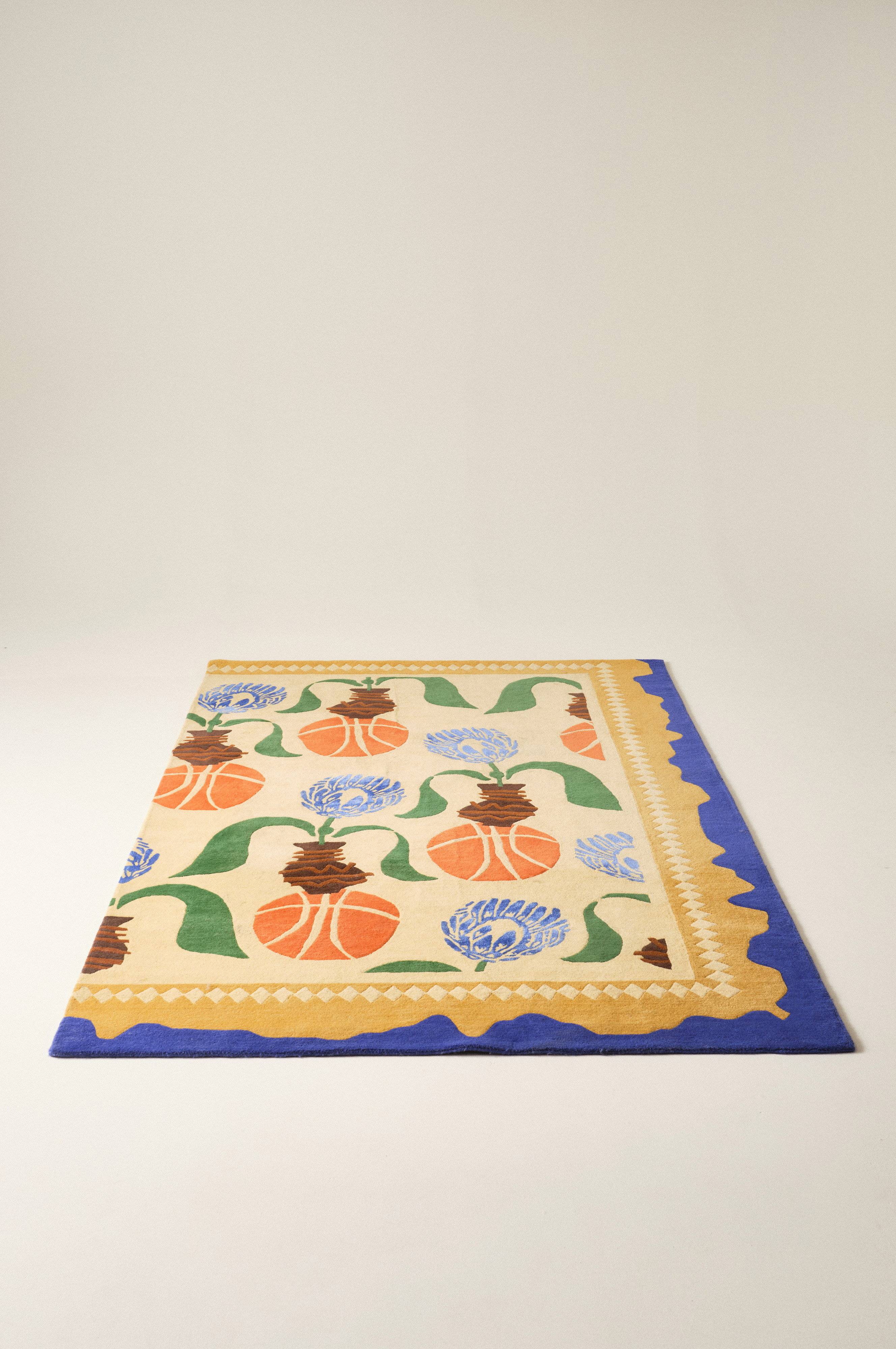 FLOWER BASKET är en ullmatta i unik design av Mikael Selin. Ullmattan är handtuftad och har kontrastfullt motiv där klassiska, vackra detaljer i blombladen krockar med ett ungdomligare formspråk och skapar kulturella möten. Mattan har asymmetrisk och oväntad inramning.