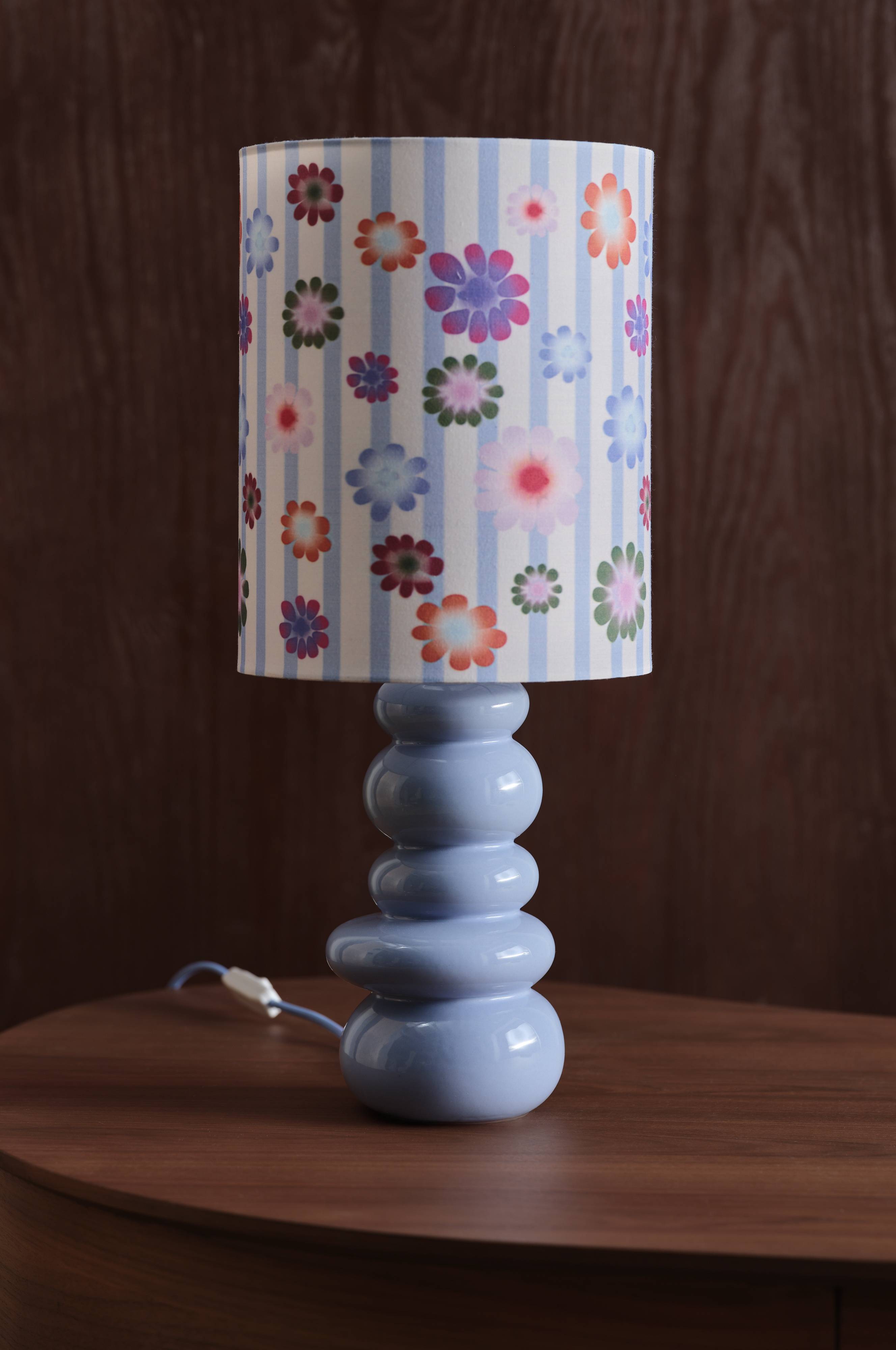 FONSO bordslampa ger en lekfull charm till din inredning med sitt nyckfulla blommönster och randiga design. Denna lampa är perfekt för trendsättare som söker en statement piece och kompletterar både moderna och retroinredningar. Den släta, kurviga basen ger en livlig touch till alla rum och lyser upp vardagsrum med sitt livfulla utseende. FONSO är perfekt för sängbordet eller arbetsytan och tillför glädje och kreativitet i vardagen.