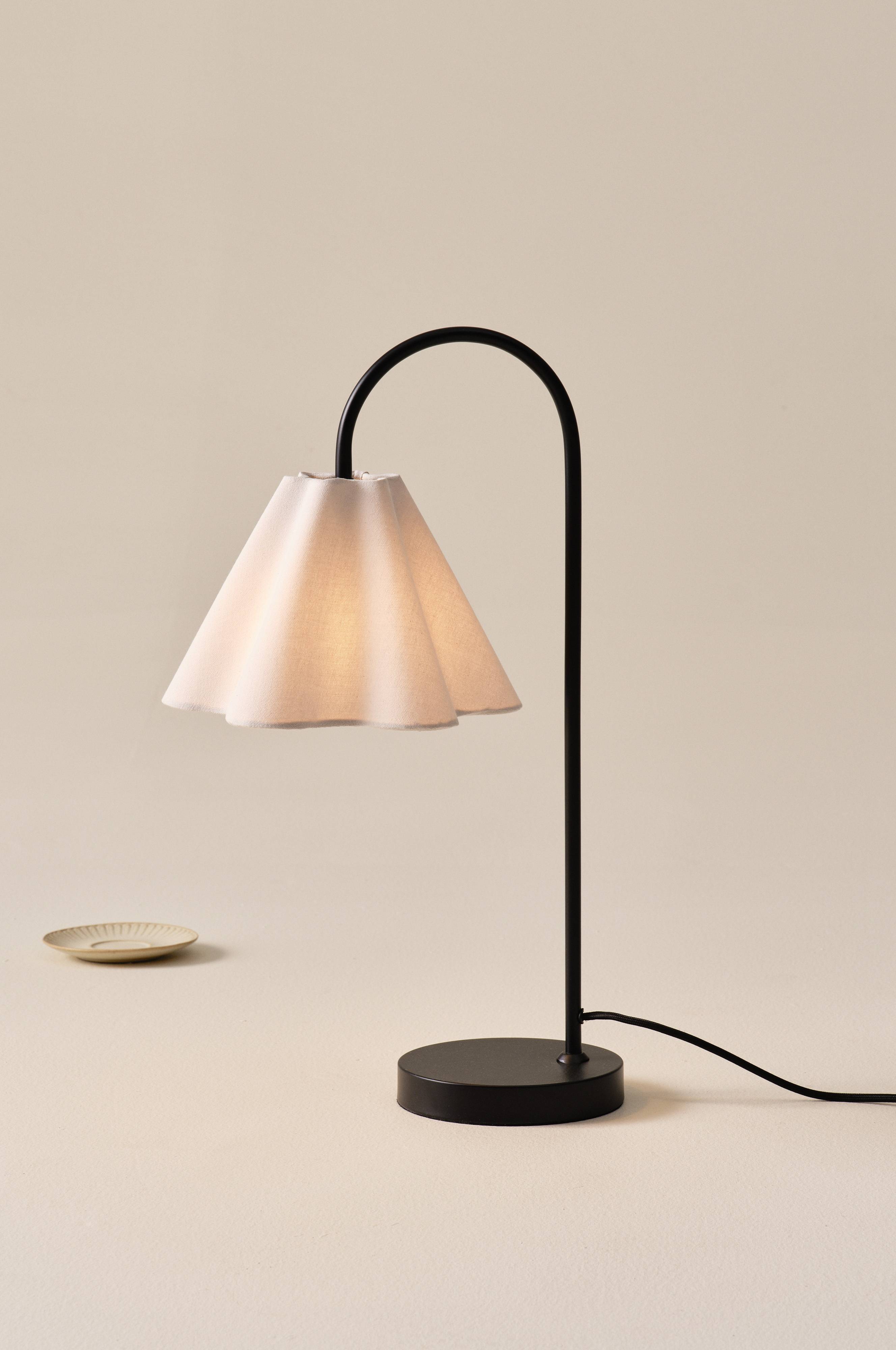 Bordslampan FRANCIS kombinerar mjuka linjer med stram design. Lampskärmen i tyg sprider ett mjukt, varmt ljus och skapar en inbjudande atmosfär i vardagsrummet, hallen, köket eller sovrummet. FRANCES är lätt att passa in. Textilkabeln med en på/av-strömbrytare garanterar enkel användning.