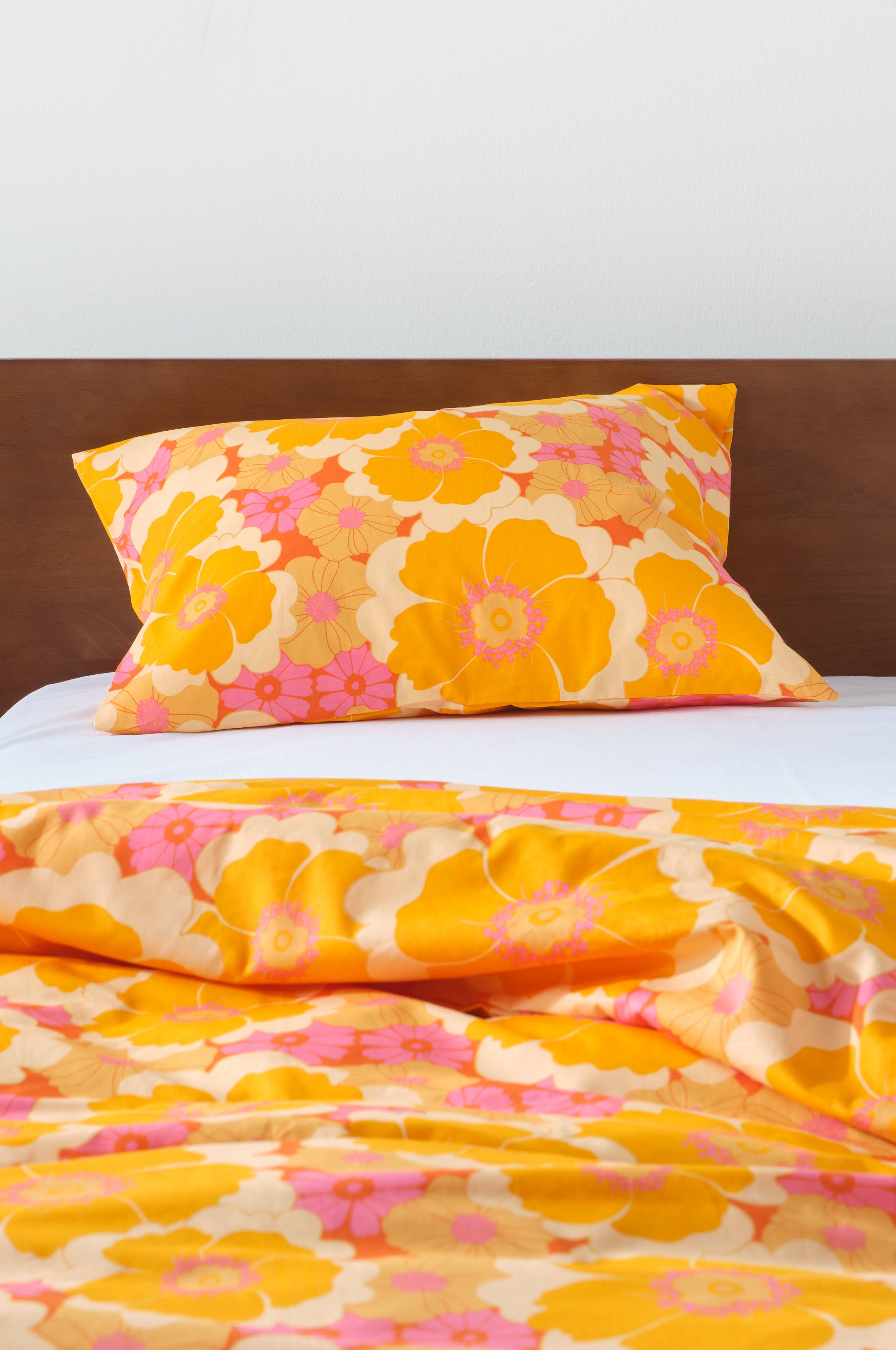 FRIDA örngott ger en touch av retro elegans till ditt sovrum. Mönstret är designat av Maria Carlberg. Dessa örngott har ett reaktivt tryckt retromönster på ekologisk bomullspercale, vilket ger mjukhet och kvalitet. Dyk ner i komfort och stil med FRIDA.