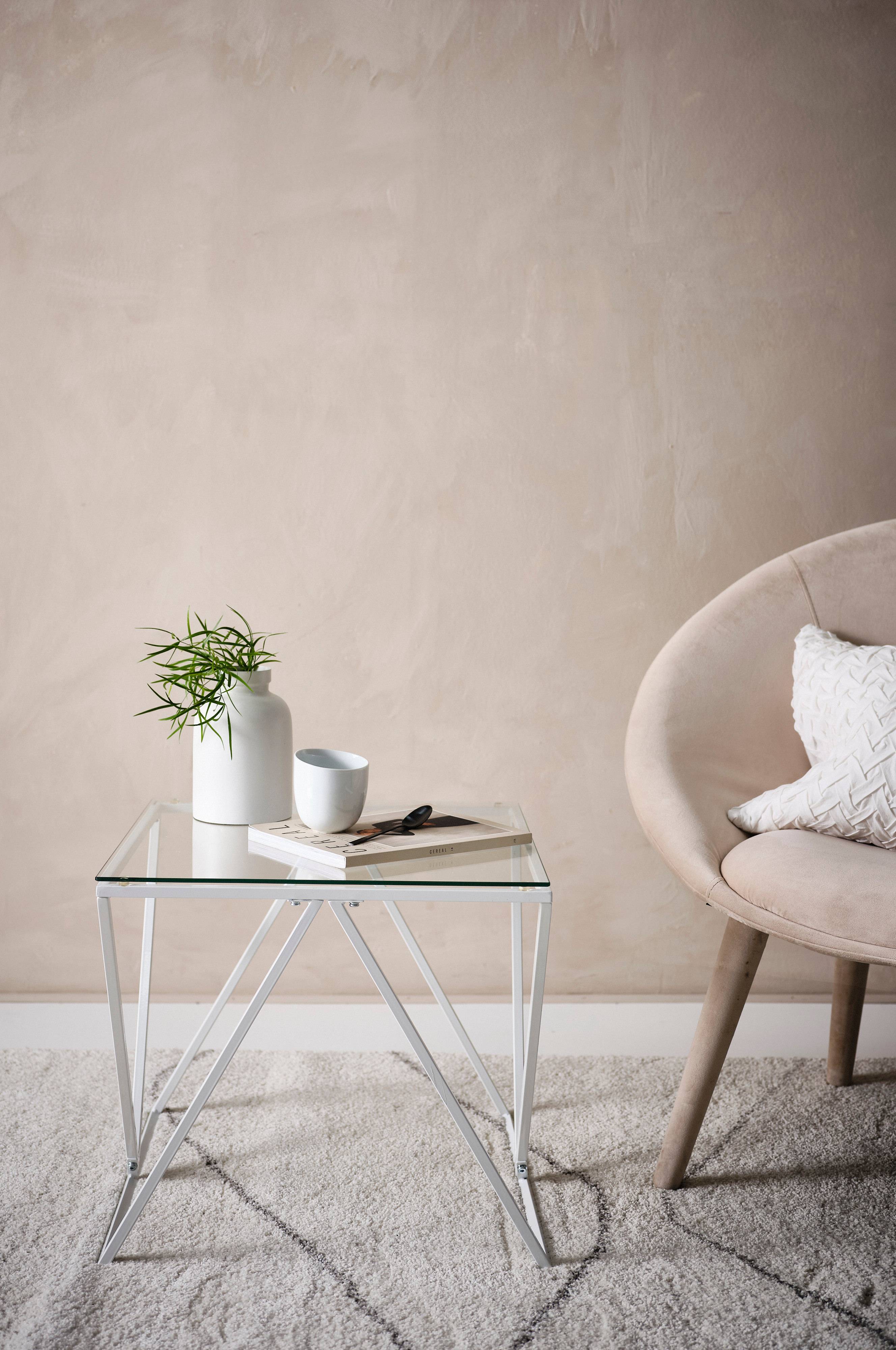 Bord med underrede i lackad metall och bordsskiva i härdat glas. Glas möter stål i en spännande kombination där underredet bildar olika geometriska former. Viss montering krävs. Monteringsanvisning medföljer.
