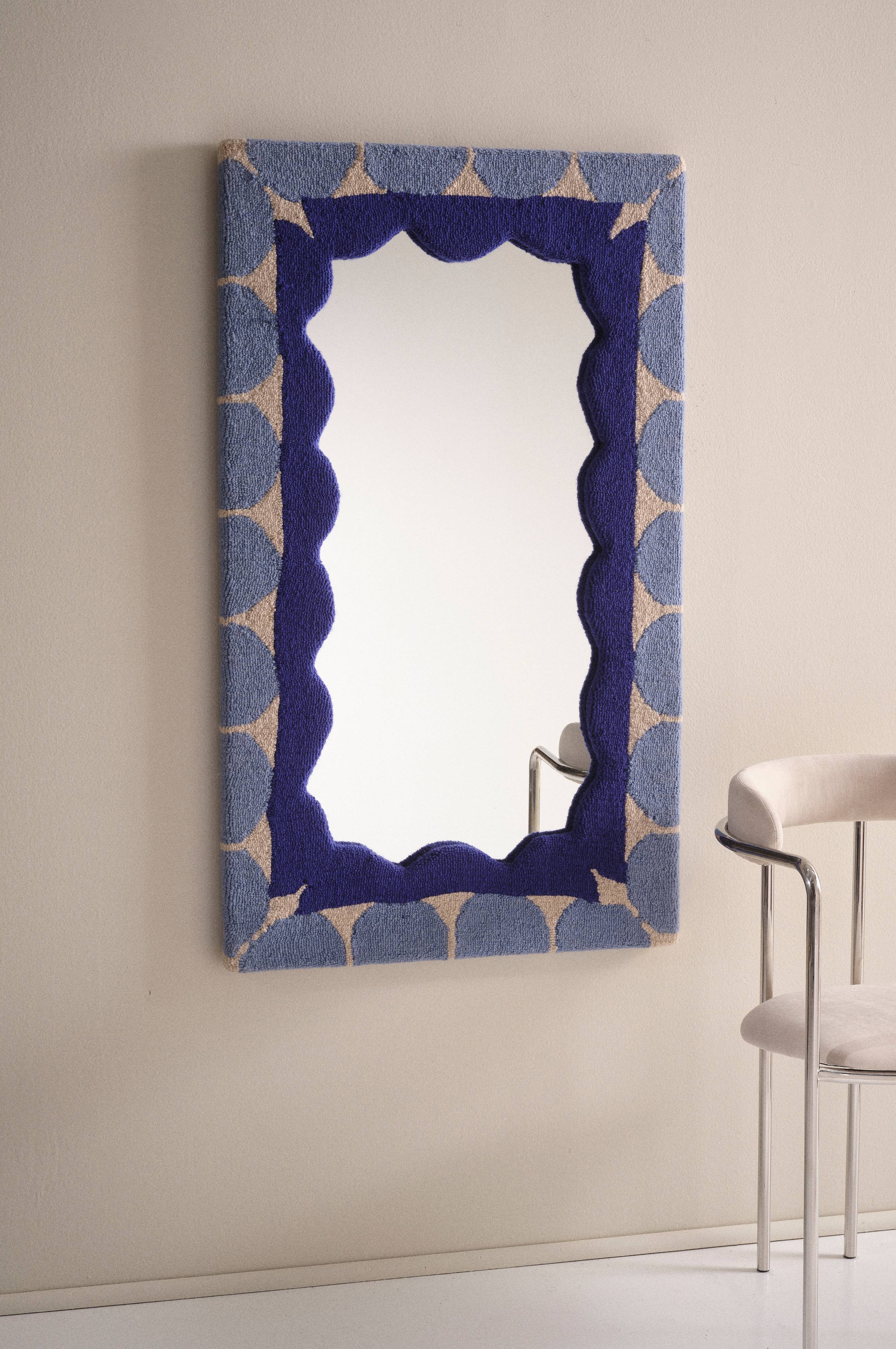 Spegel med läcker ram av MDF som är klädd med luggmatta av ull. Ramens innerkant har organisk, mjuk form och luggmattan som klär ramen är trefärgad. Spegeln kan hängas både stående och liggande, vilket som passar dig bäst. Baksidan är av MDF.