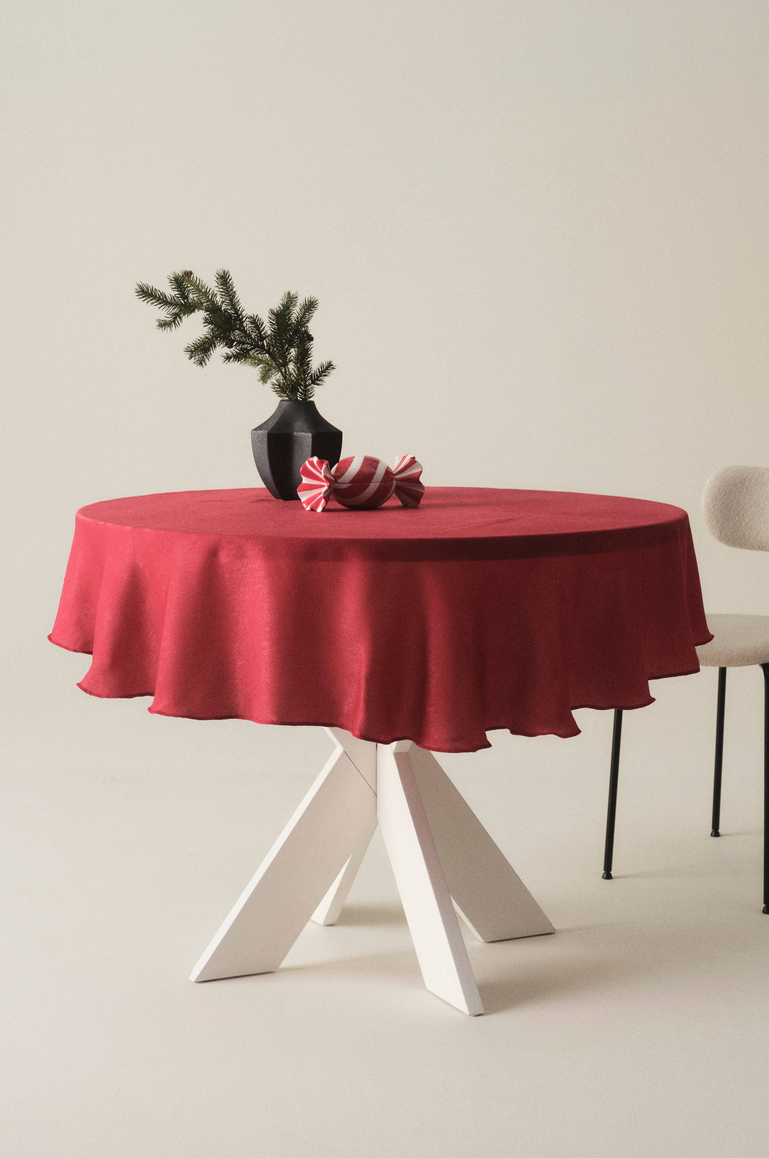Tips/råd: Dukens härliga kvalité gör att det blir extra fint med en stor duk, så du får ordentligt med fall runt om bordet.