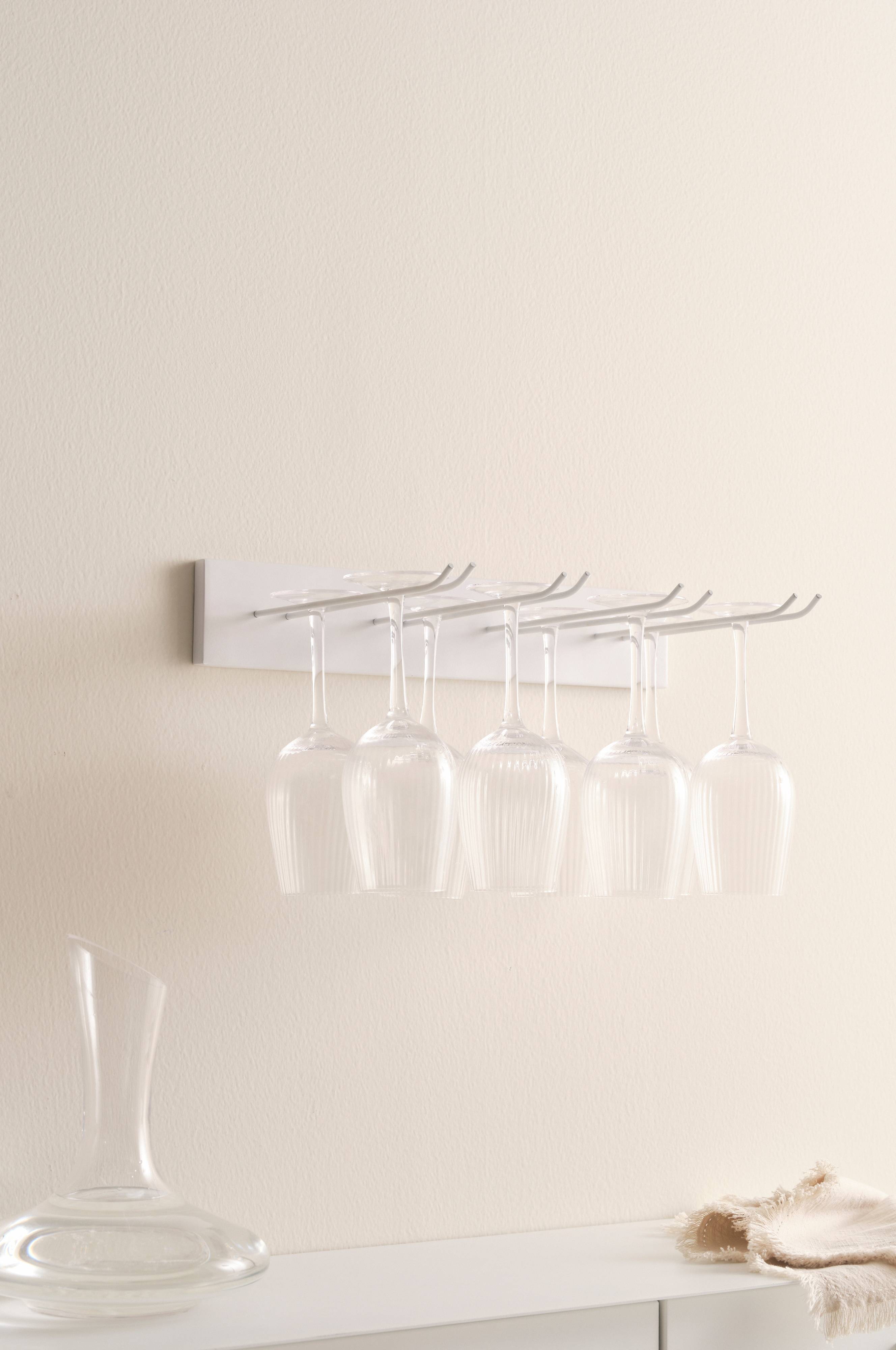 Vinglashållare i järn. Snygg på väggen med dina favoritglas hängandes, praktiskt och dekorativt. Denna modell har fyra hängare för glas på fot. Obs! Glas medföljer ej. Köps separat.