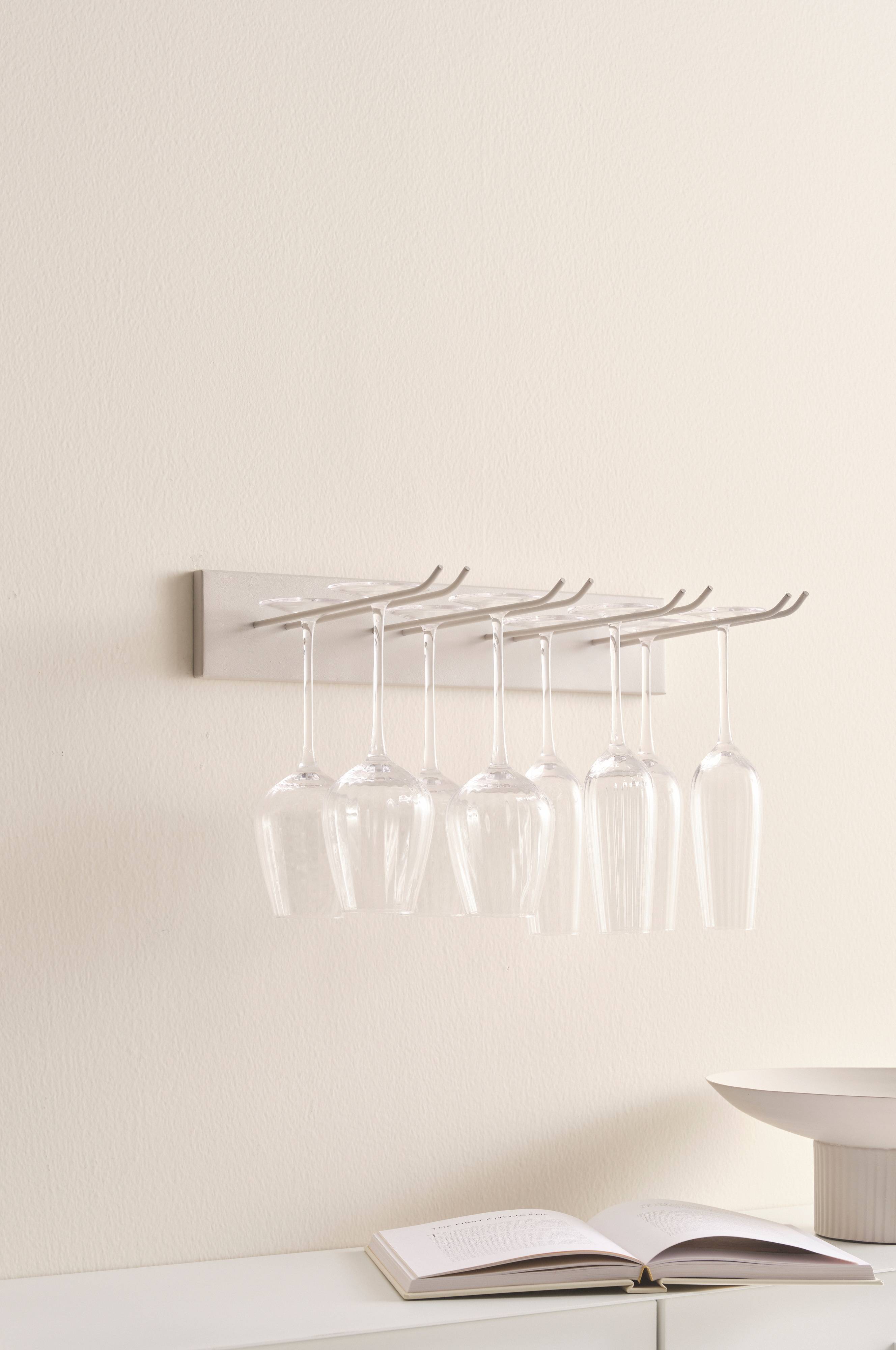 Vinglashållare i järn. Snygg på väggen med dina favoritglas hängandes, praktiskt och dekorativt. Denna modell har fyra hängare för glas på fot. Obs! Glas medföljer ej. Köps separat.