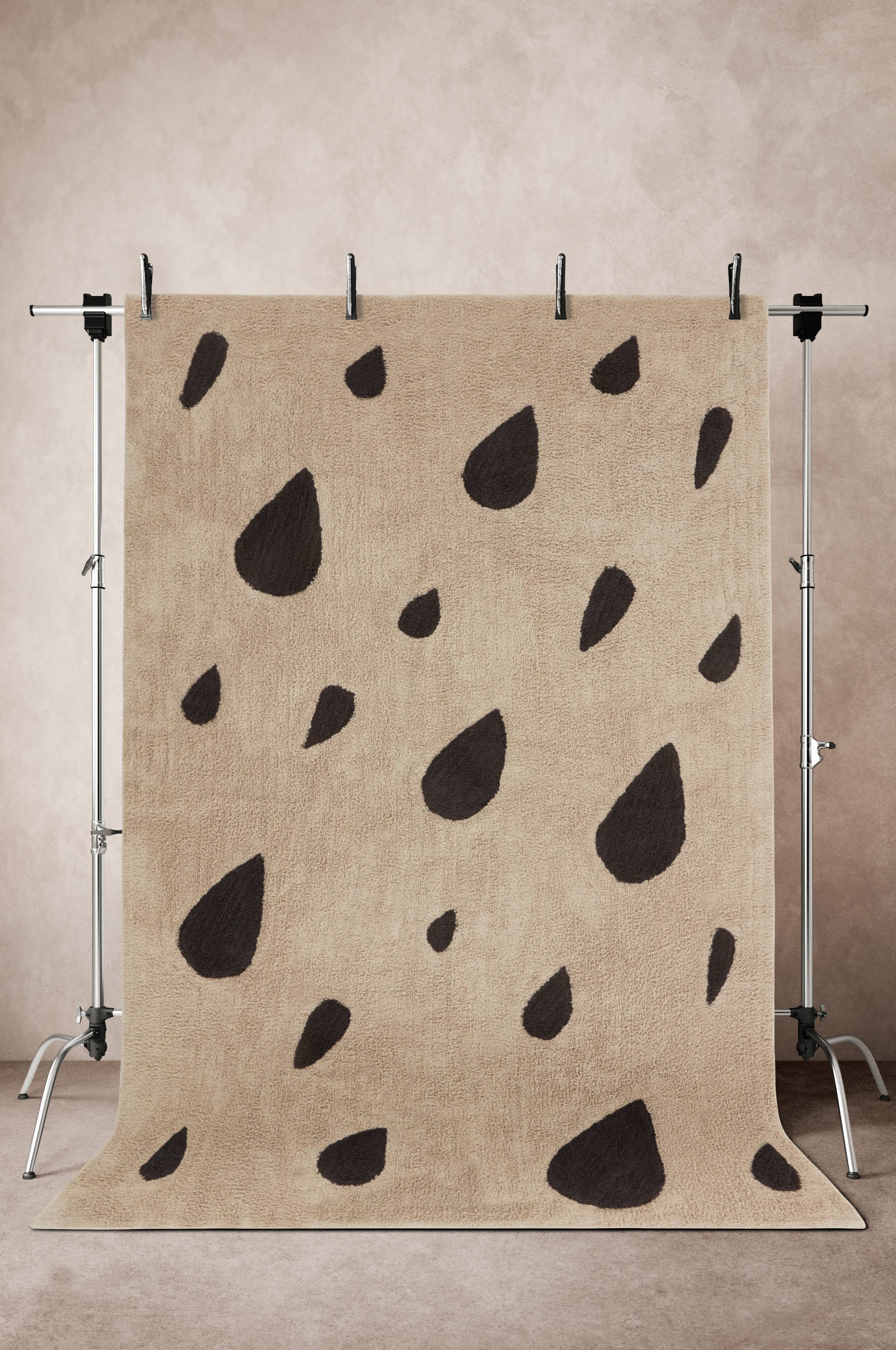 Mönstrad matta av bomull med kort, mjuk lugg. Det droppformade och oregelbundna mönstret ger en livfull och matta som fångar blicken. En mjuk och skön bomullsmatta passar lika bra i vardagsrummet som i sovrummet. Lugghöjd 1 cm. Tjocklek 1,1 cm. 1365 g/m².