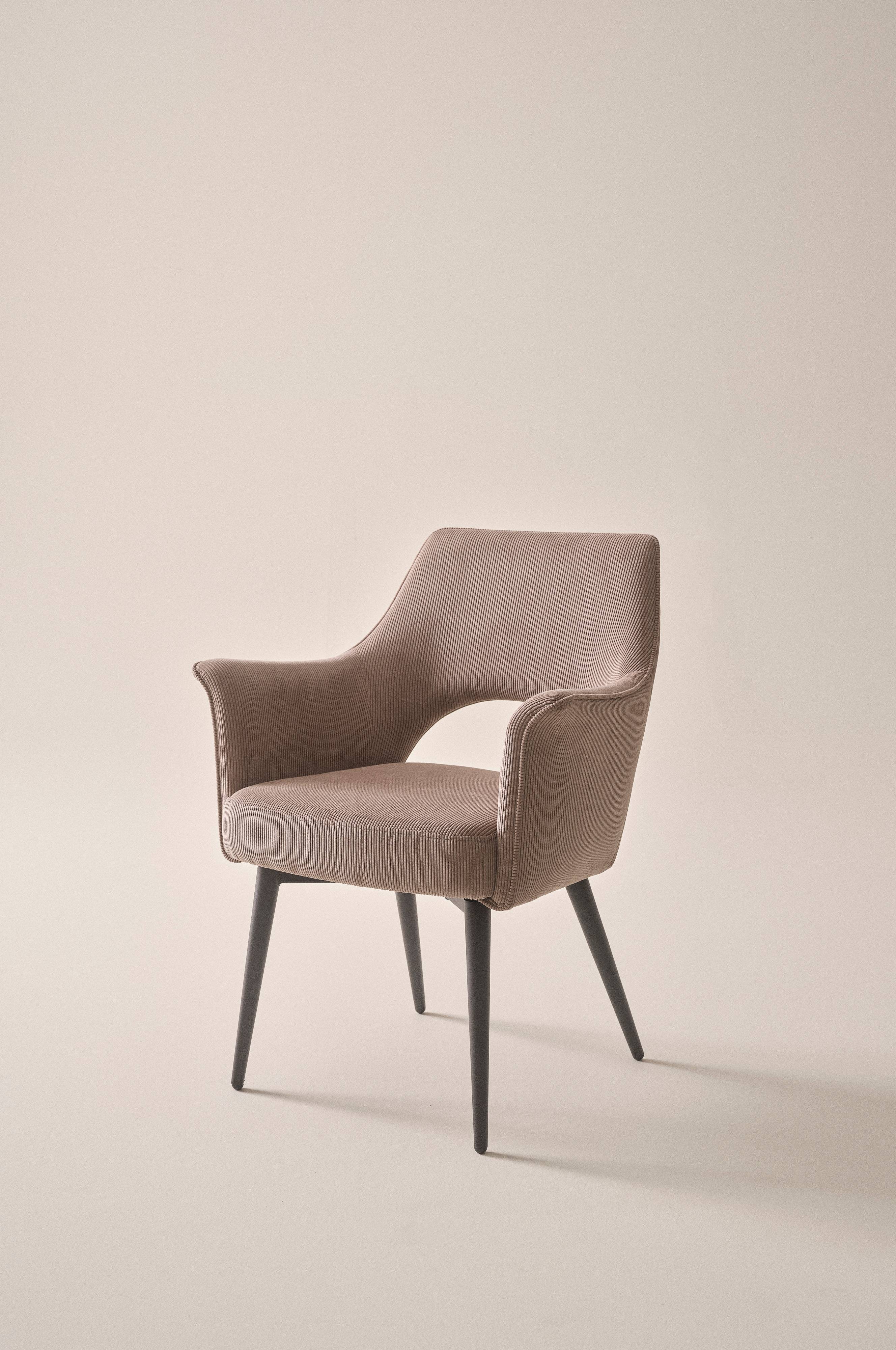 Karmstol i snygg, stoppad modell med machesterklädsel. Benen är i pulverlackerat stål. JESOLO är en stilren karmstol med mjuk skumfyllning som gör att du sitter bekvämt. Manchestertyget är mycket slitstarkt med Martindale på 40000. JESOLO är bekväm att sitta i och gör sig bra runt ett matsalsbord. Viss montering krävs.