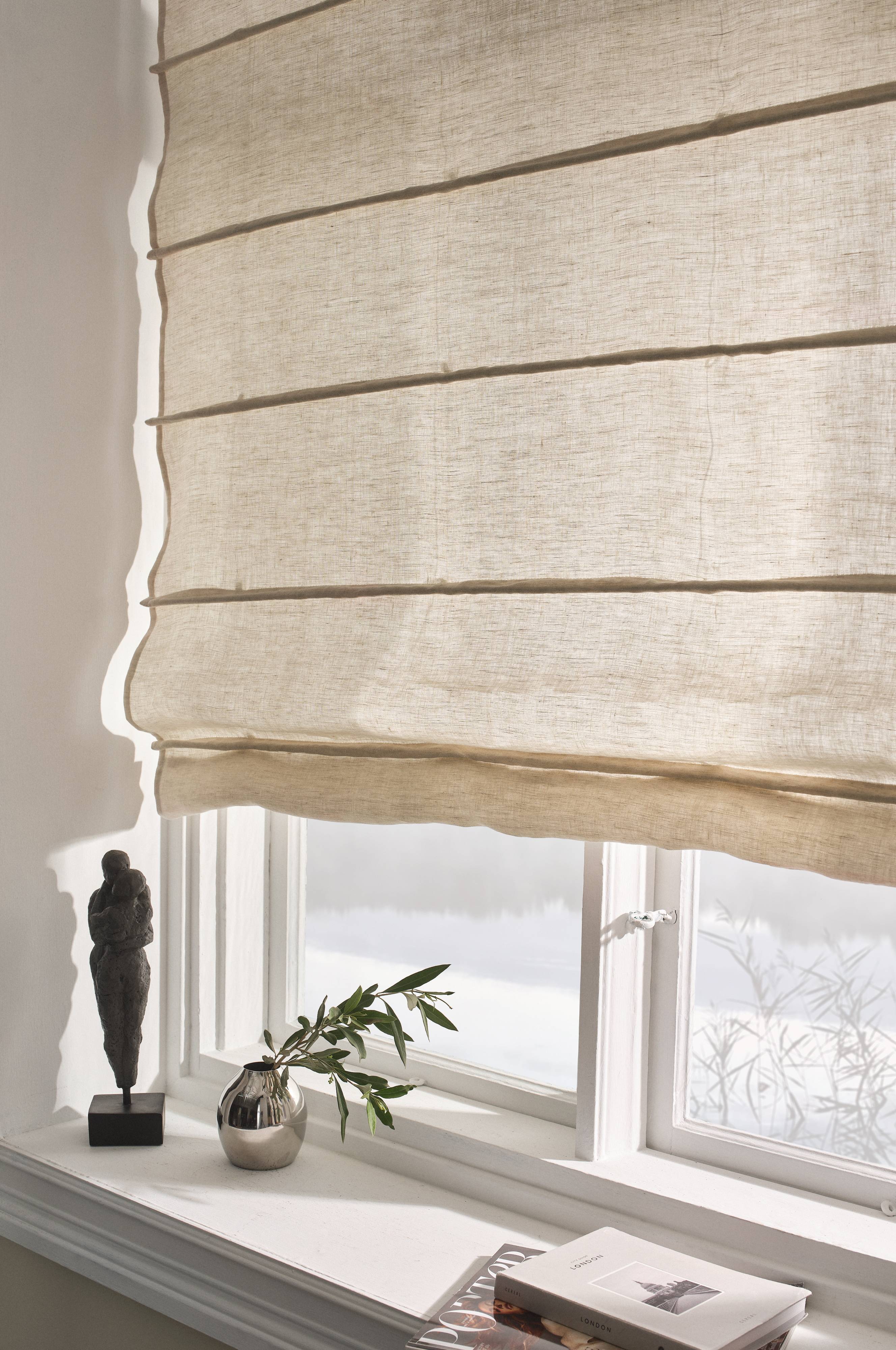 Mjuk nedåtgående linnefärgad väv. Enkel montering och mekanismen fungerar.