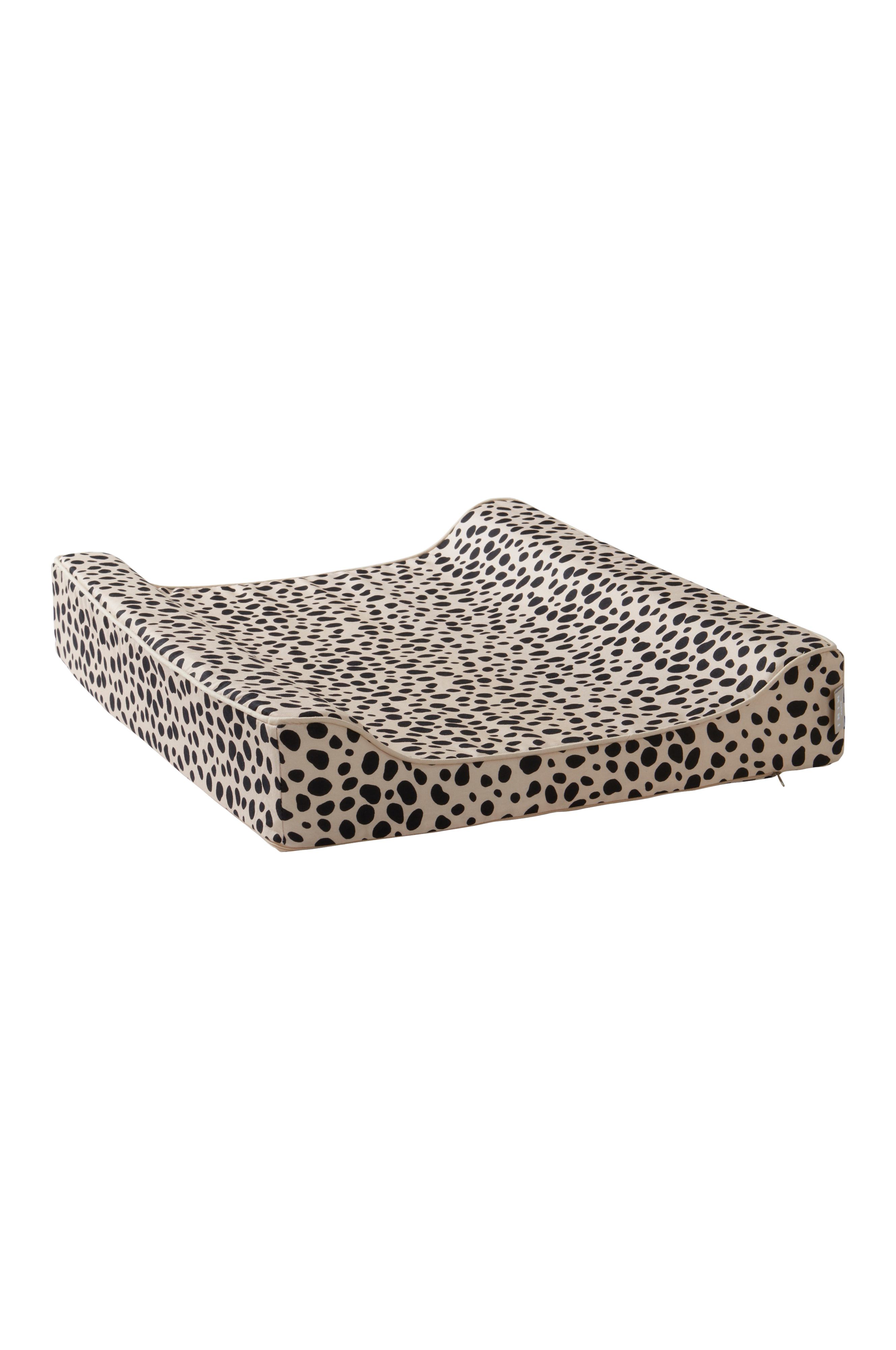 Skötbädd med bekväm, mediumfast skumkärna av polyuretan. Kanten längs långsidorna har en mjuk rundning uppåt vilket gör skötbordet mer ombonat och ditt barn ligger säkrare, det är svårare att rulla åt sidan (lämna aldrig ditt barn på skötbordet utan uppsikt). Överdraget är i mjukt bomullstyg med en beläggning som gör det vattenavvisande. Svart passpoalkant längs kortsidorna. Överdraget är avtagbart och kan tvättas i maskin. Dragkedja längs ena kortsidan.