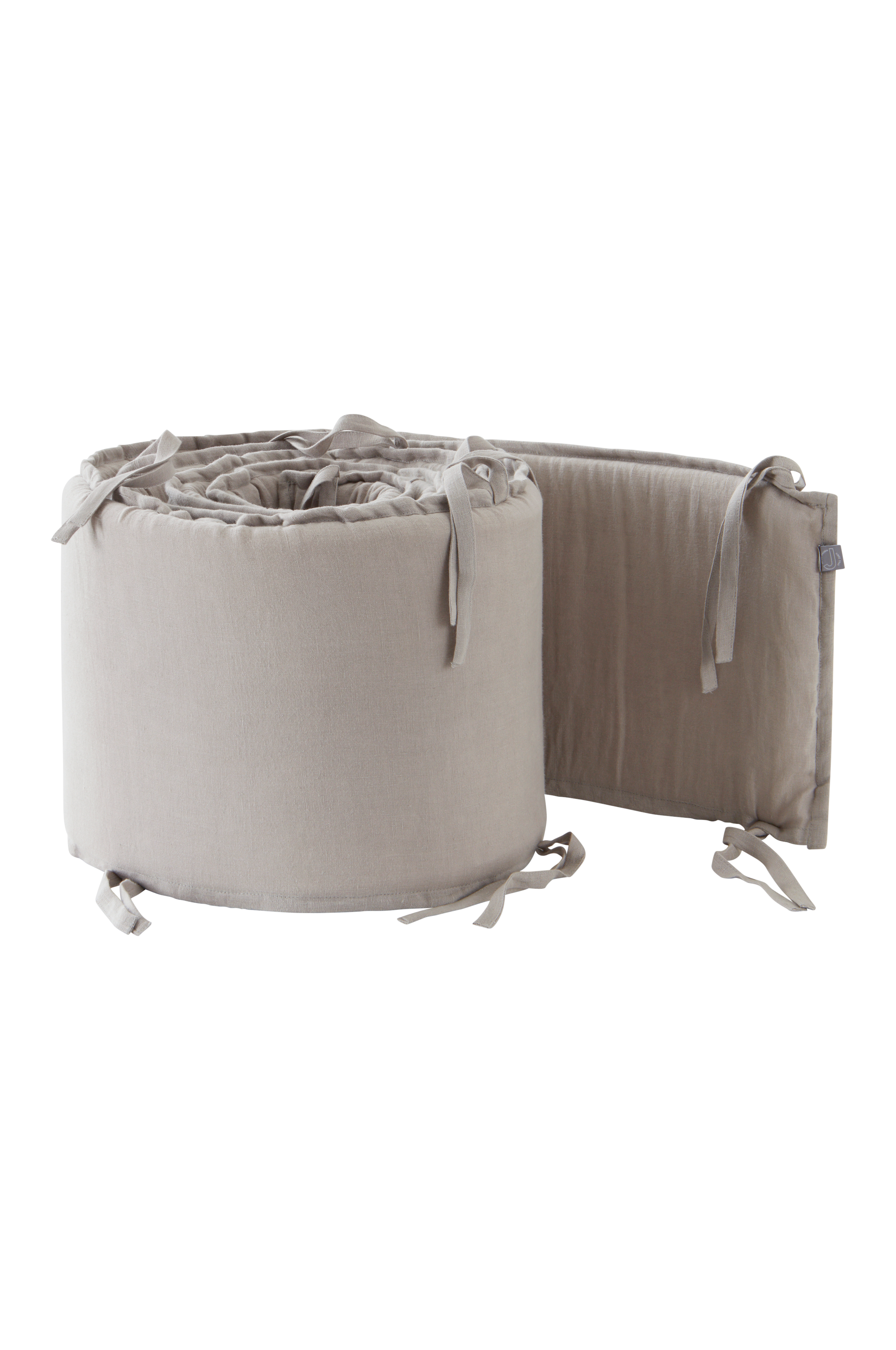 Spjälsängsskydd med yttertyg av naturligt och behagligt linne. Den sköna linnekvalitén har tvättats för att bli härligt mjuk och skön. Fyllning av polyester med mjuk skumgummikärna. Spjälskyddet gör spjälsängen mer ombonad och mysig, samtidigt som det hindrar barnet från att slå emot spjälorna i sömnen. Spjälsängsskyddet knyts fast med knytband. Yttertyget är avtagbart med dragkedja i öppningen och tvättbart. Vikt 160 g/m².