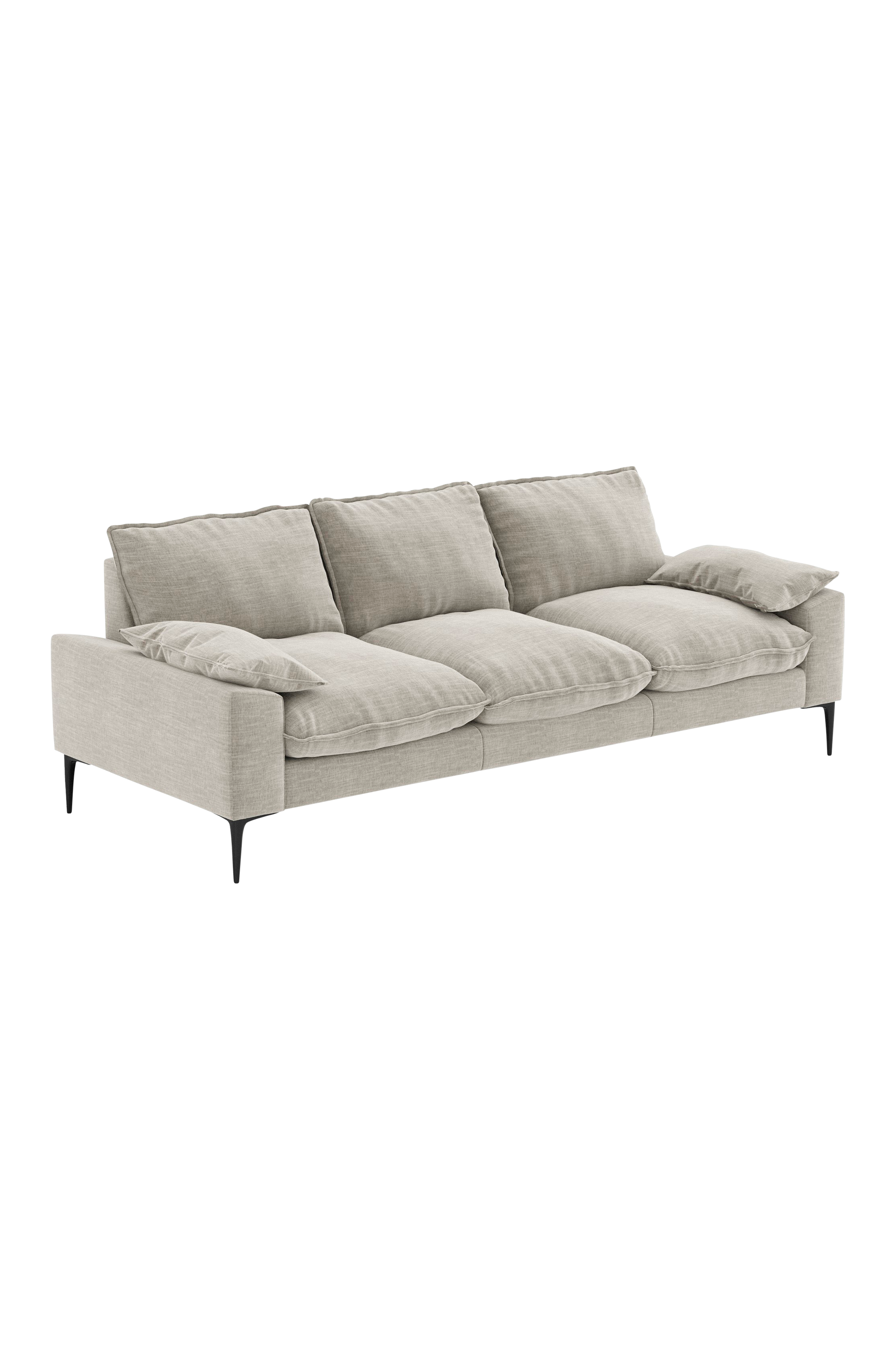 NAPLES 3-sitssoffa är lika skön som den ser ut. I en avslappnad stil med nordiska influenser gör soffan rätt för sig både estetiskt och när den ska assistera vilopausen. Låga armstöd med mjuka sidokuddar gör den skön att ligga ner i, kanske för en god bok eller en bra film. De mjuka kuddarna är lösa och du kan enkelt puffa upp dem och ge soffan nytt liv. Kuddfodralen är avtagbara, försedda med dragkedja och kan tvättas i maskin.