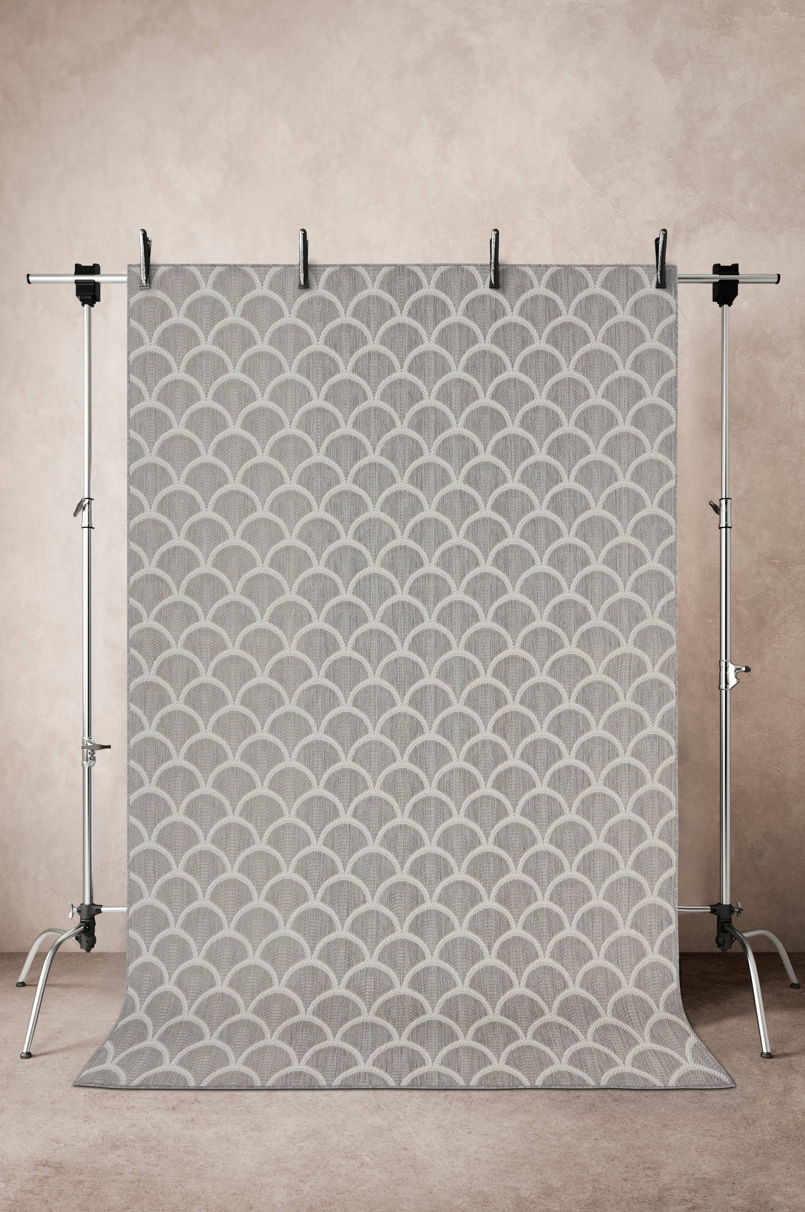 Slätvävd matta av återvunnen polyester, mattan har snyggt bågmönster. Detta är en behaglig kvalité som både upplevs och ser ut som bomull men är tillverkad av återvunnen polyester. En härlig matta som du kan använda både inom- och utomhus. Den tål både fukt och regn. Tjocklek 0,4 cm. 1000 g/m².