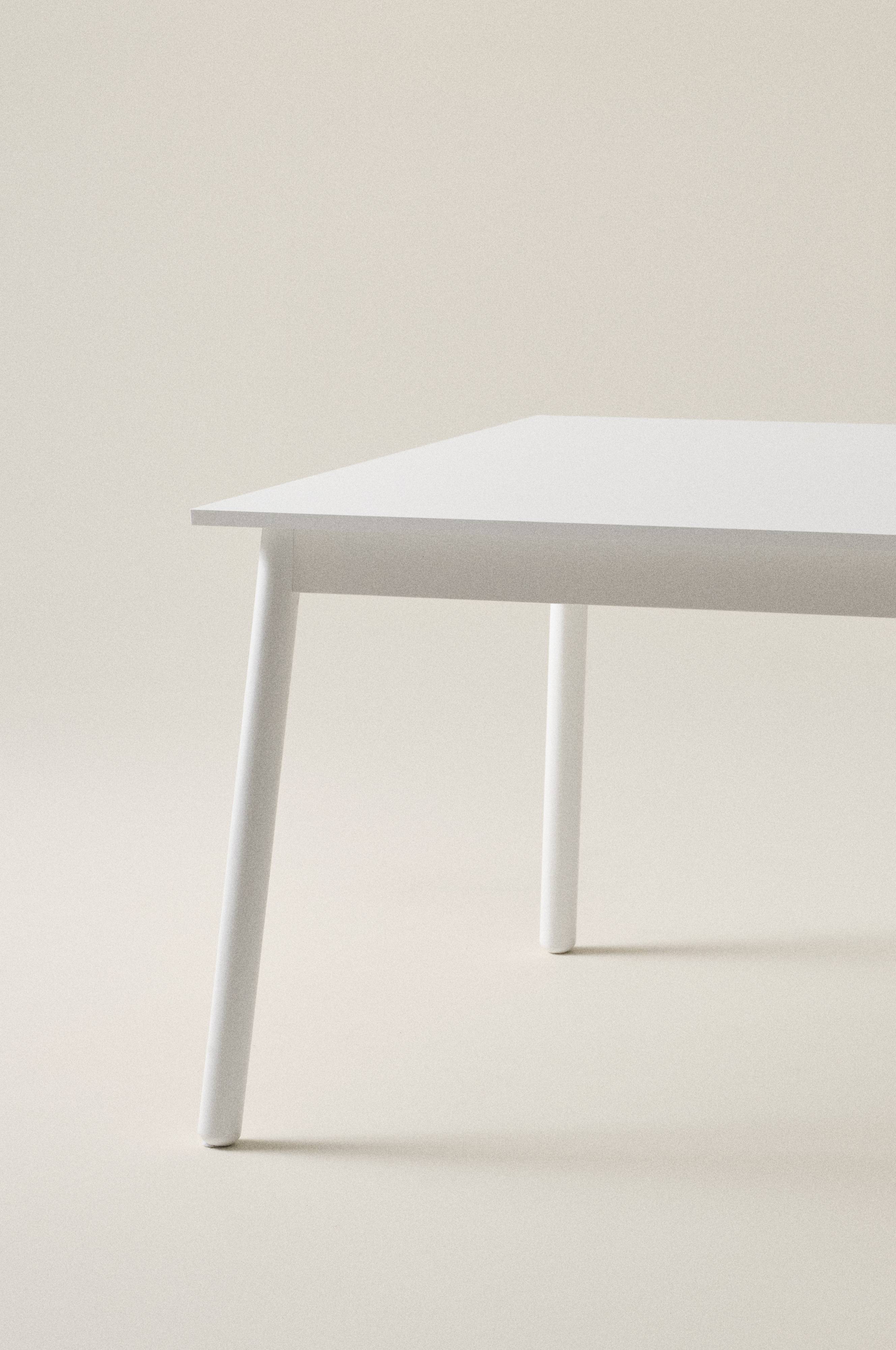 Rektangulärt, stilrent matbord med bordsskiva av lackad MDF och ben i lackad furu. KINNA är ett stilrent matbord i avskalad design. Bordsskivan med kantiga hörn matchas med två smala ben längs vardera kortända. Viss montering krävs. Monteringsanvisning medföljer.
