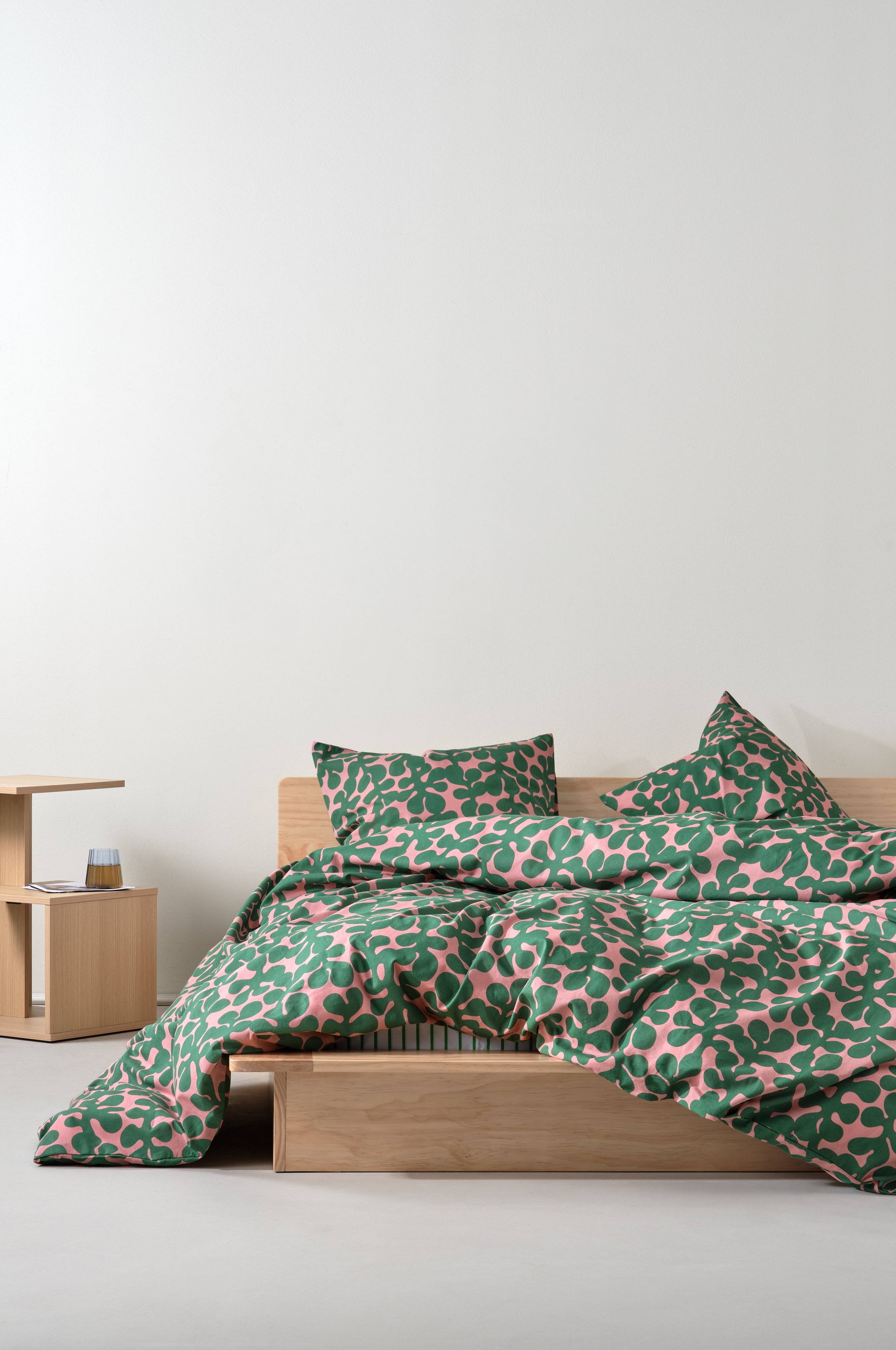 Påslakanset i 3 delar designat av Maria Carlberg. Lyxig komfort med extra brett påslakan. Ett livfullt påslakan med retroinspirerat mönster. Med handhål och dolda tryckknappar, utformat för ett drömlikt sovrum.