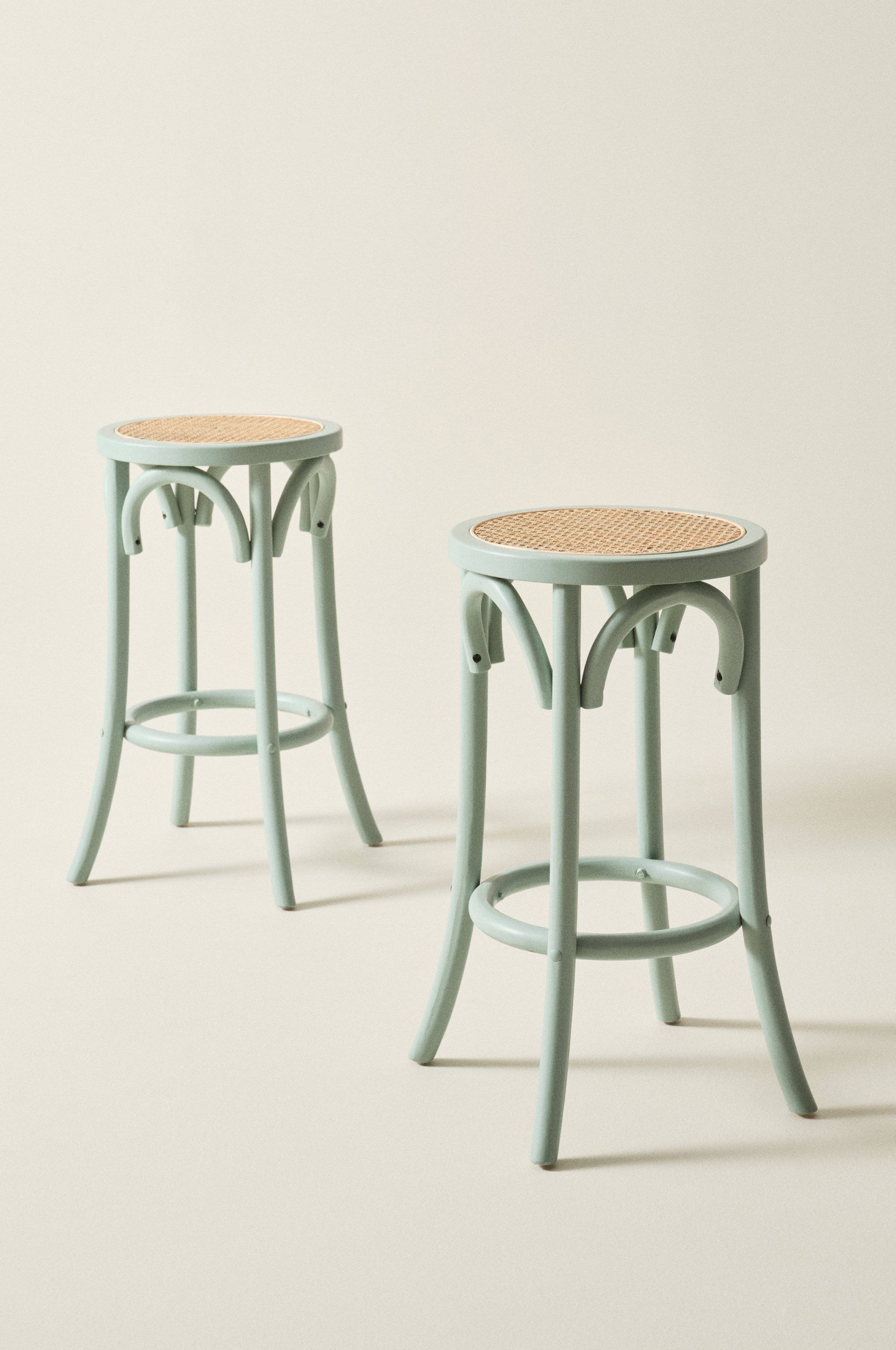 Barpall med skön cafékänsla. Barpallen har stomme av bokträ och sits av rotting och stöd för fötterna.